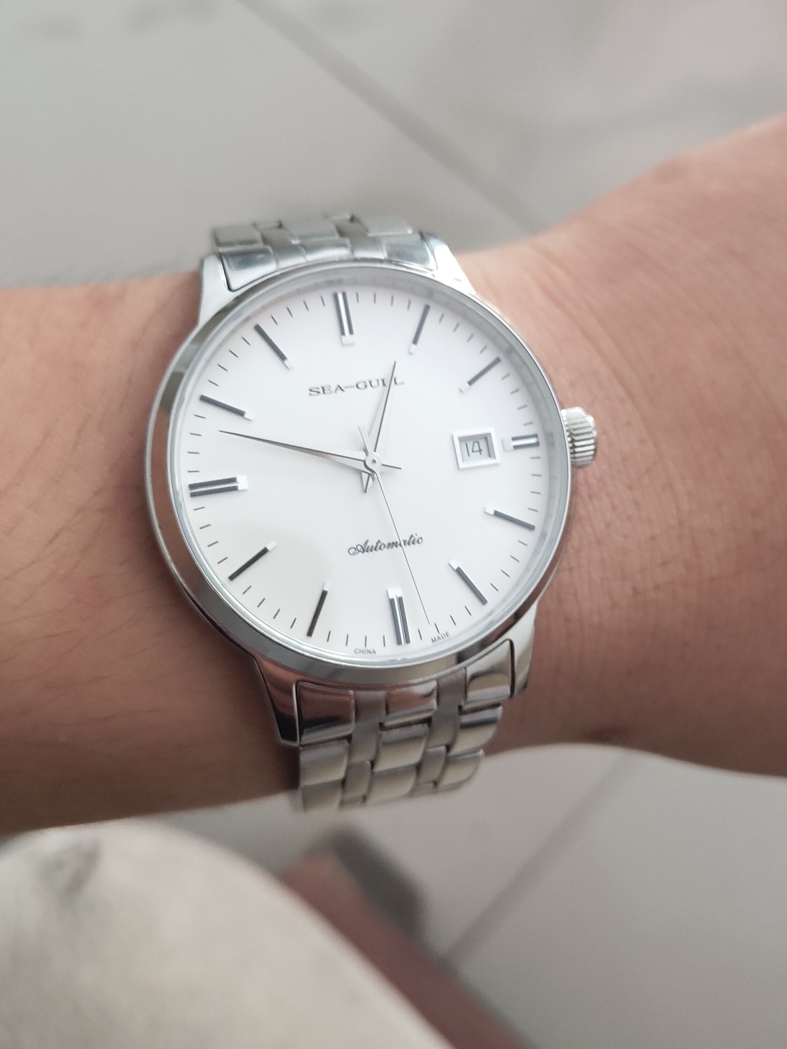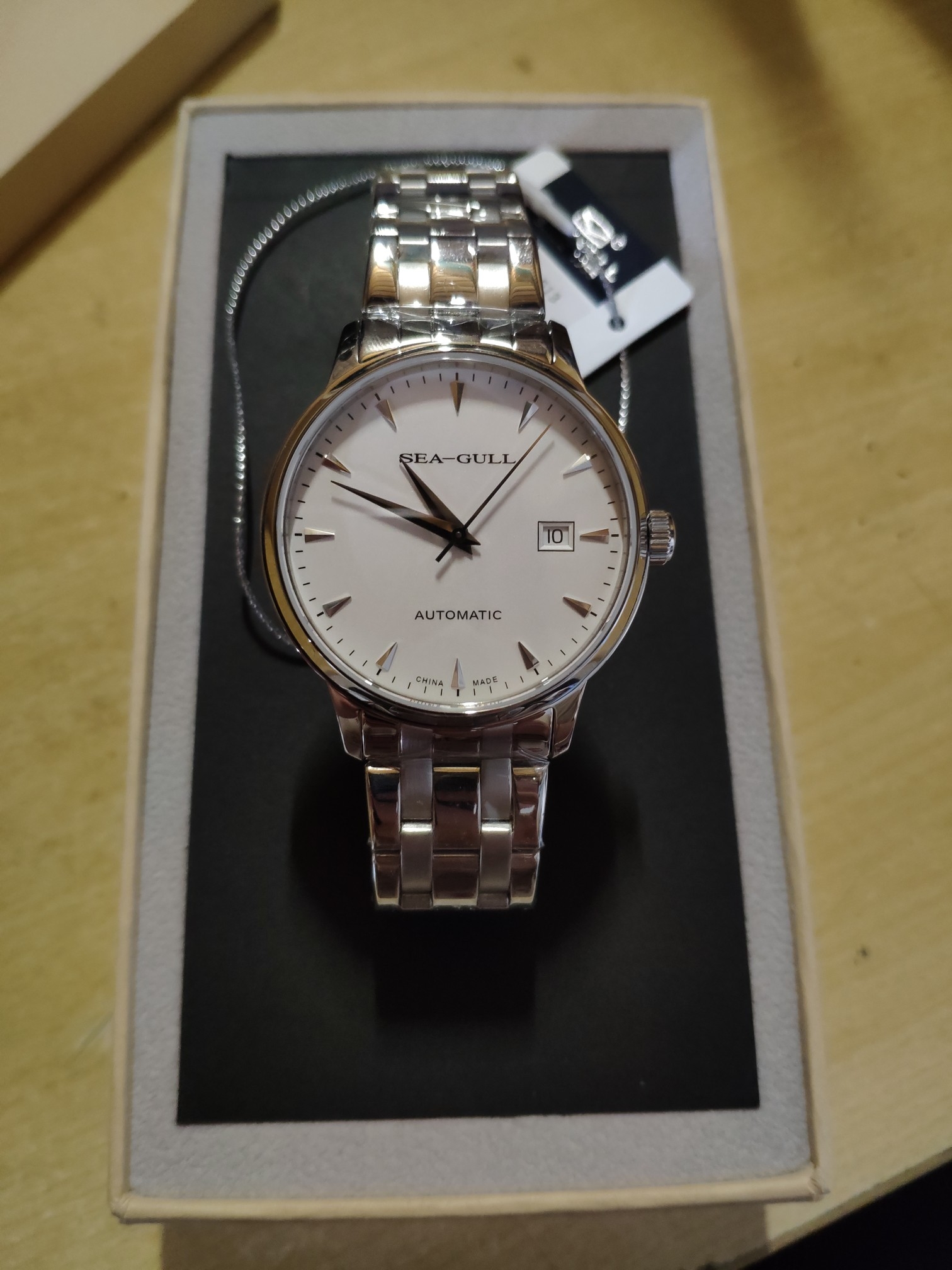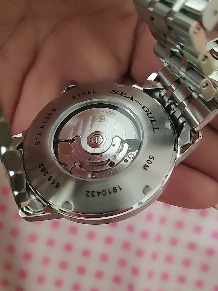 海鸥机械男表,撞色系小三针腕表,简洁的线条,干净的设计,斯文温和中透漏出运动的渴望,彰显洒脱魅力。表镜采用合成蓝宝石材质,硬度高耐磨性好佳,搭配钢带佩戴舒适!透底式表背设计将透彻进行到底。