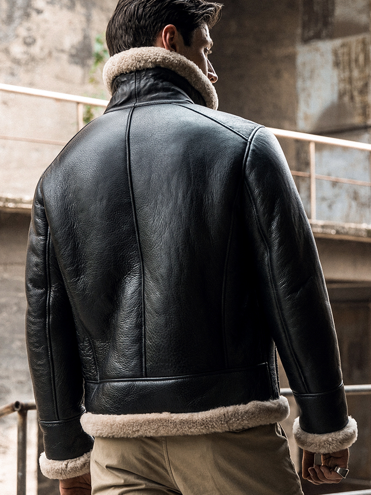 此款男士真皮皮衣,采用澳洲进口的绵羊皮毛一体,颗粒状的卷毛羊羔毛,舒适透气,保暖性极佳!