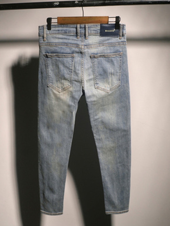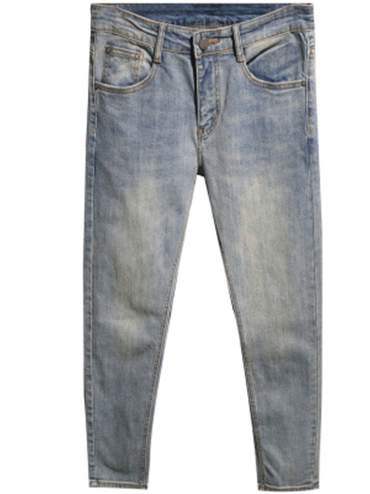 牛仔裤的经典之处在于它是没有季节性的,一年四季都可以搭配穿着,这款复古牛仔裤采用个性的哈伦小脚裤版型,上宽下窄的版型具有修饰腿部线条的效果,显高又显瘦。做旧的水洗工艺,以及磨破处理,更显复古时尚。亮点在于裤身个性多折明线工艺,增添裤子细节感,更加帅气有型。