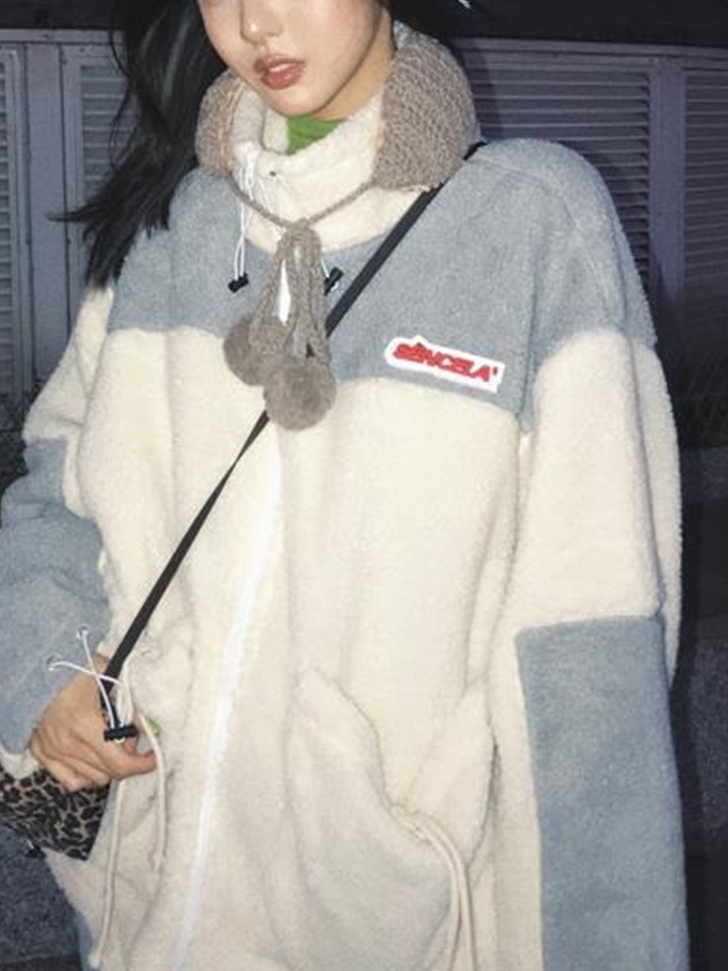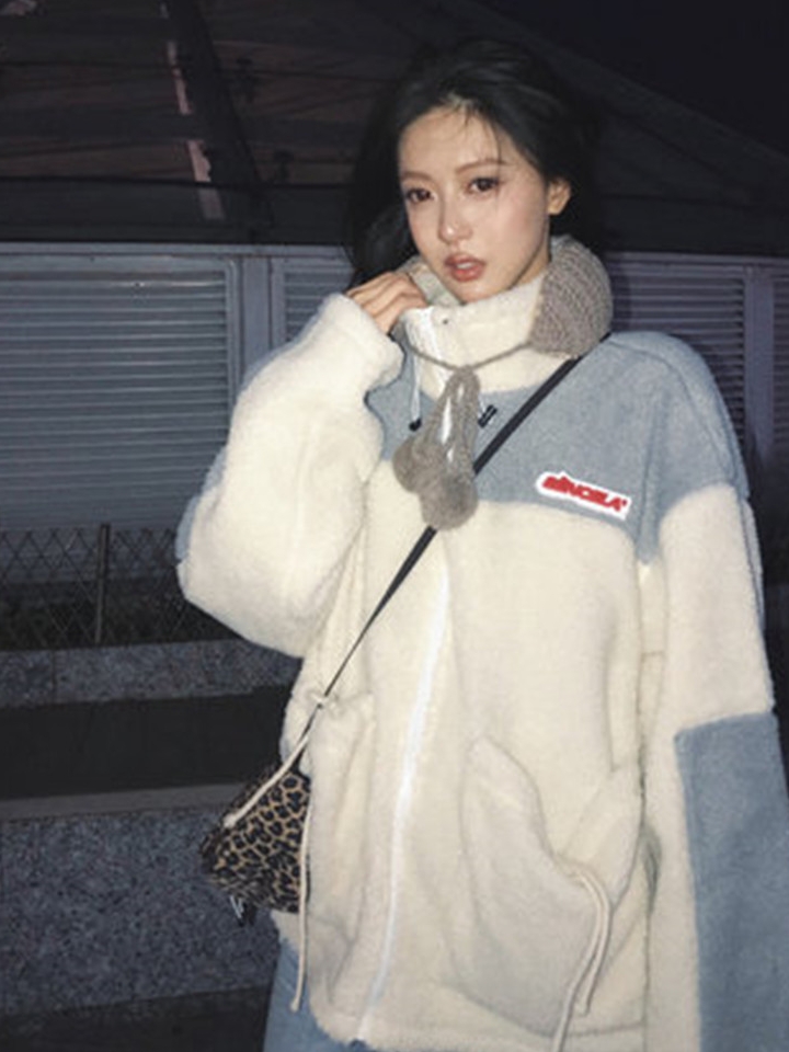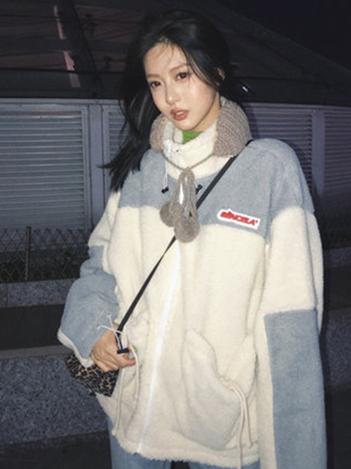 每个女人都希望每天能打扮出不同的自己,每天都给人带来新鲜的感觉。羊羔绒外套双肩采用蓝色条纹设计视觉效果上更加显出。