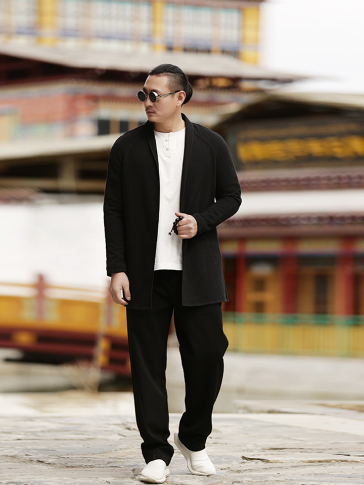 简单随性的穿着方式,宽松裤型,摆出潮流时尚的文艺气息,