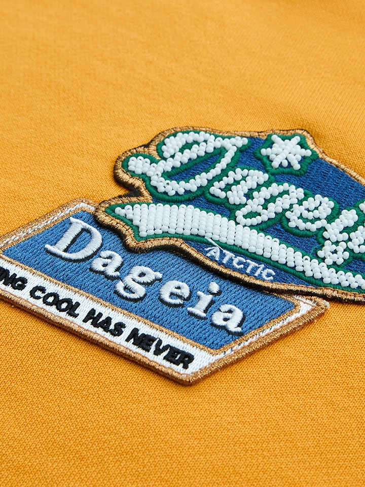 这件卫衣的设计简单,纯色的大底上各种立体的徽章形成了鲜明的美式风格。除了刺绣的徽章外,植绒徽章的设计更是独特又个性。这种设计的灵感来源于西海岸的街头艺术,不仅极富底蕴内涵,更丰富了衣服的整体视觉,不张扬不单调却独具时尚格调。