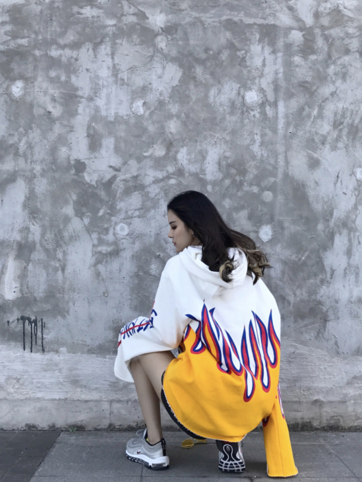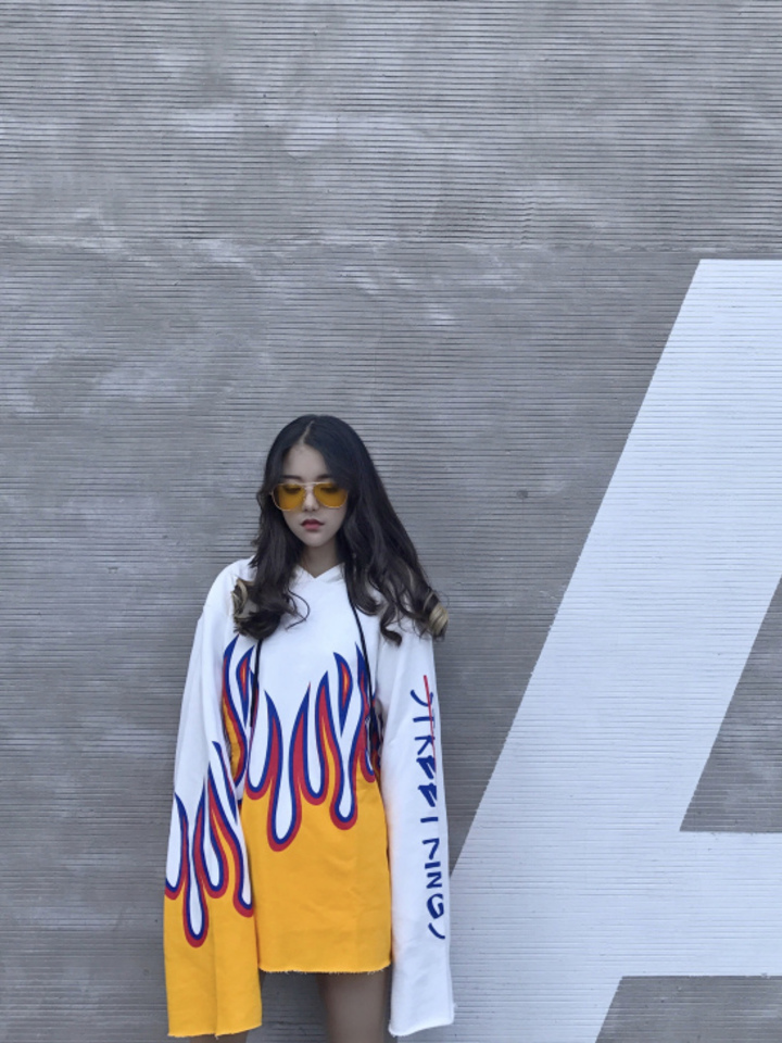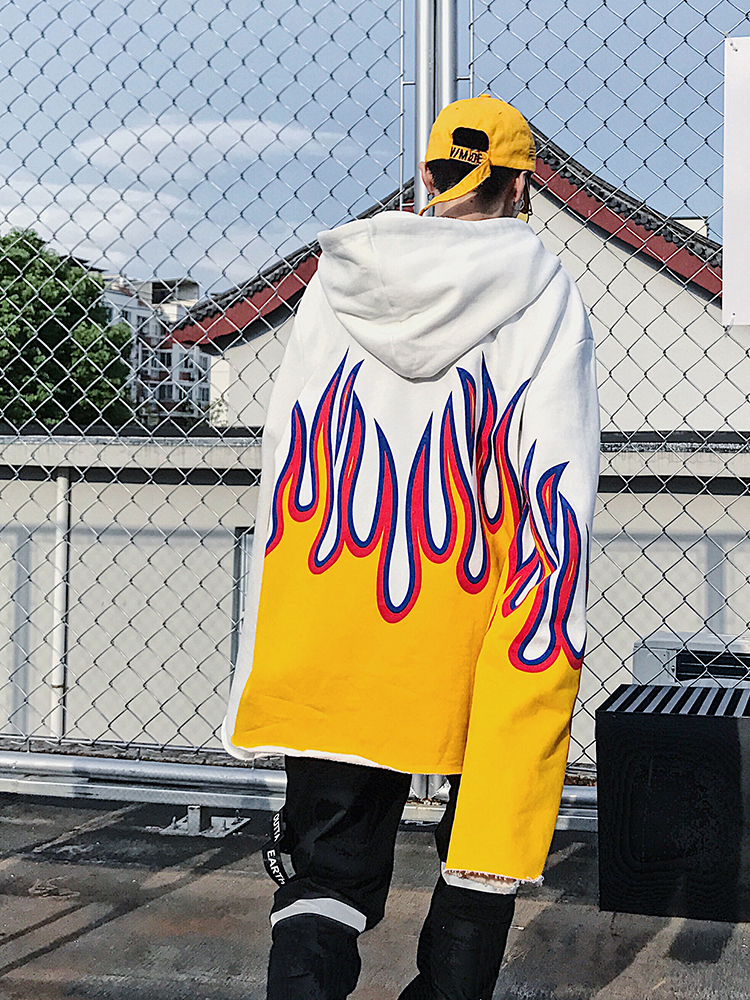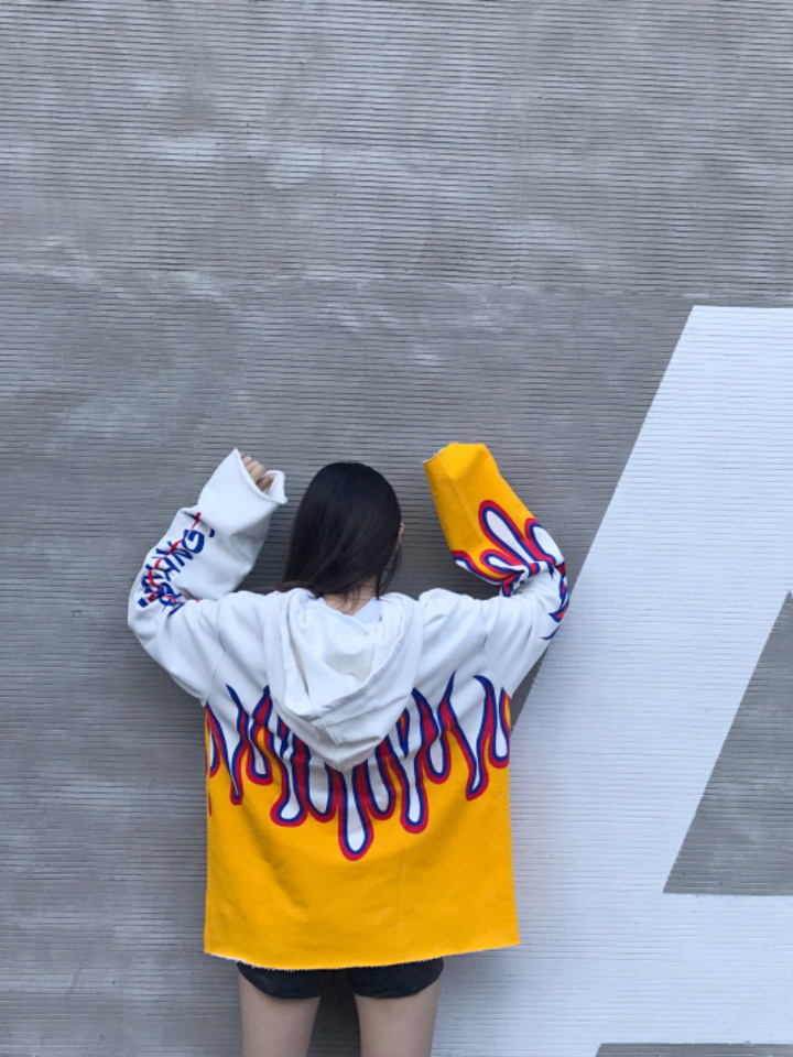 亮眼的黄色具有强烈的冲击感,配上火焰,更加增添服装整体色彩感,更具潮流气息感。