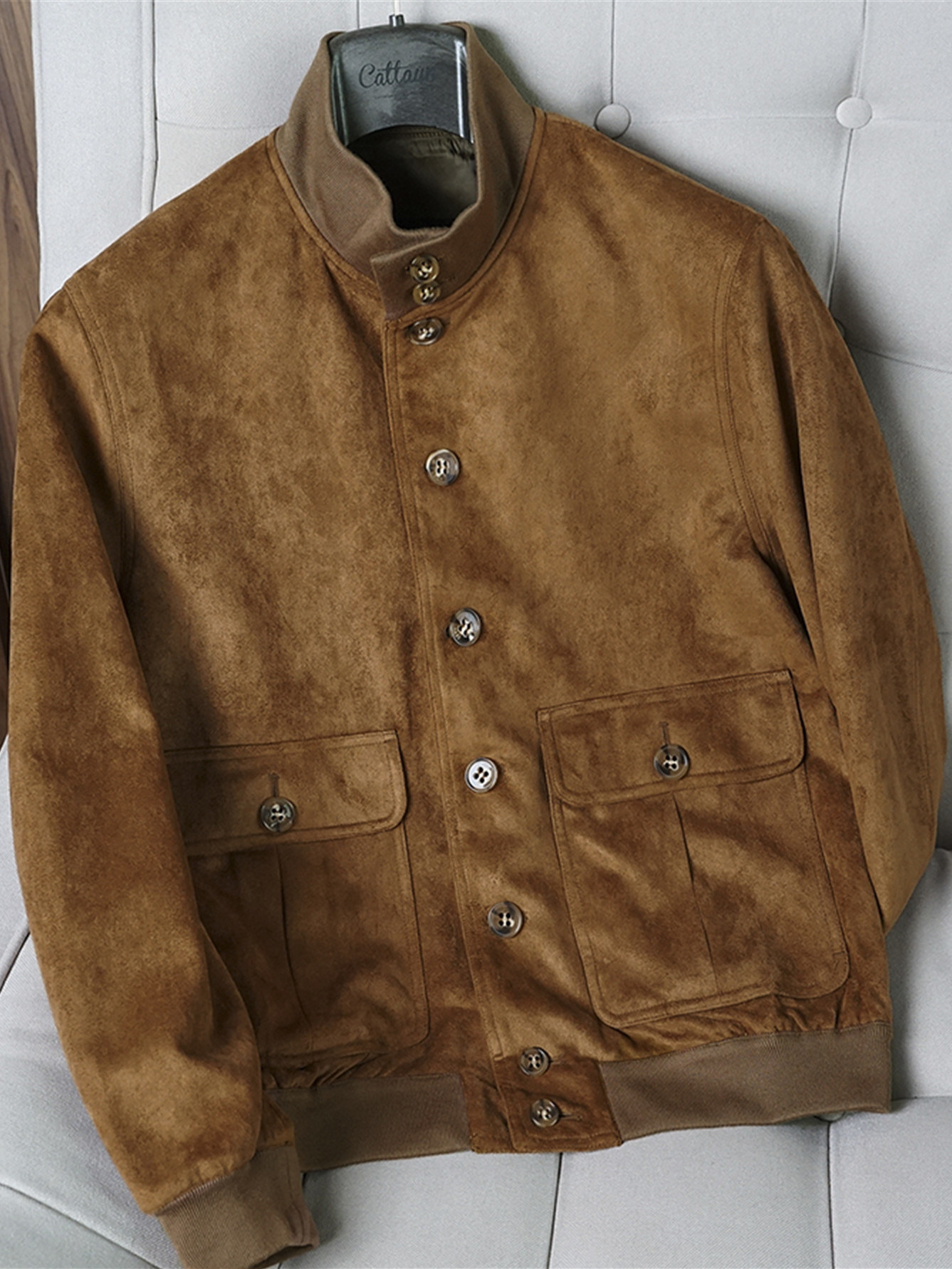 挺括有型的小外套设计,利用麂皮的材质映衬出复古腔调,更显精致!版型较短,凸显干练利落腔调,映衬出满满的中性魅力,简约自然,颇显型格!