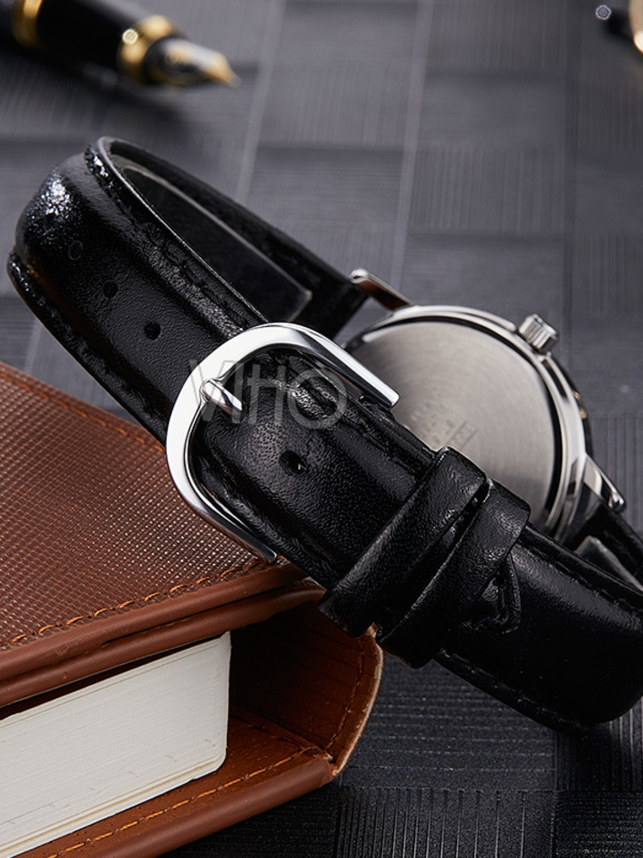 真皮表带彰显出高端品质,同时打造柔软细腻的特性,贴合手腕,给手部以舒服的佩戴感受,减少束缚感。精致的金属表盘显得时髦抢眼,男性魅力十足。
