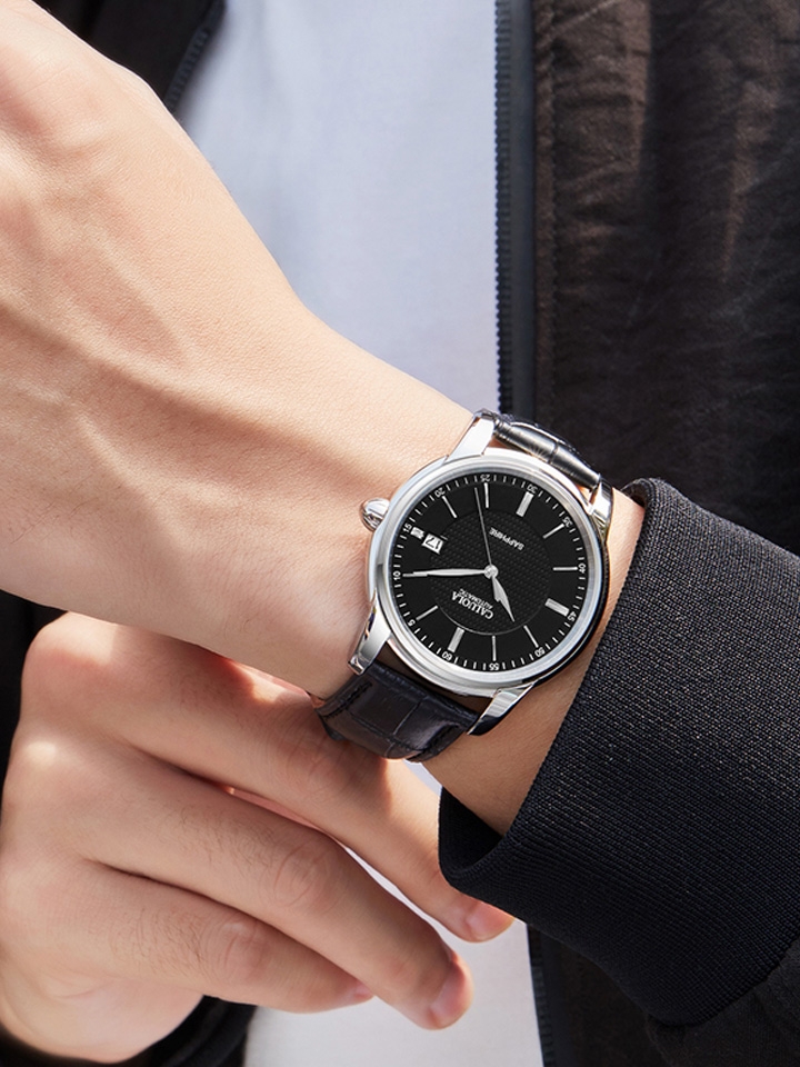 卡罗莱的这只手表选用了人工合成蓝宝石镜面,通透明亮的色泽,具有很好的耐磨防刮花的性能;选用小牛皮与蝴蝶扣的搭配,柔软舒适,配戴便捷。