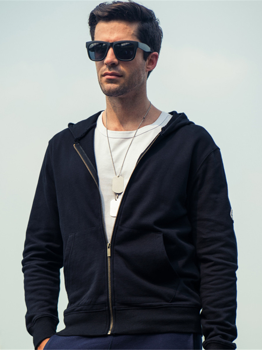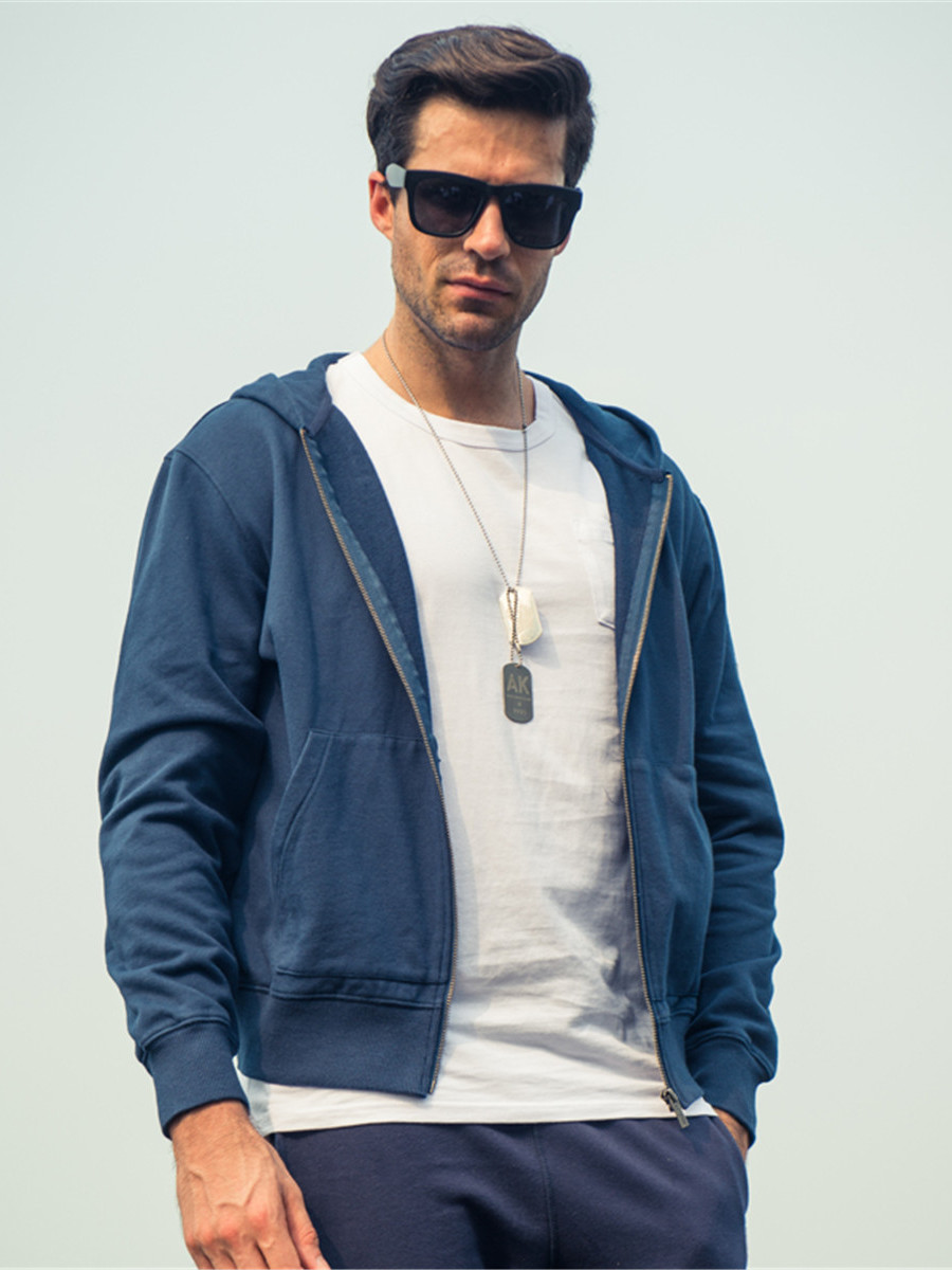 本款为连帽外套,时尚休闲易于搭配。袖口采用螺纹收口设计,防风保暖且腕部不束缚。