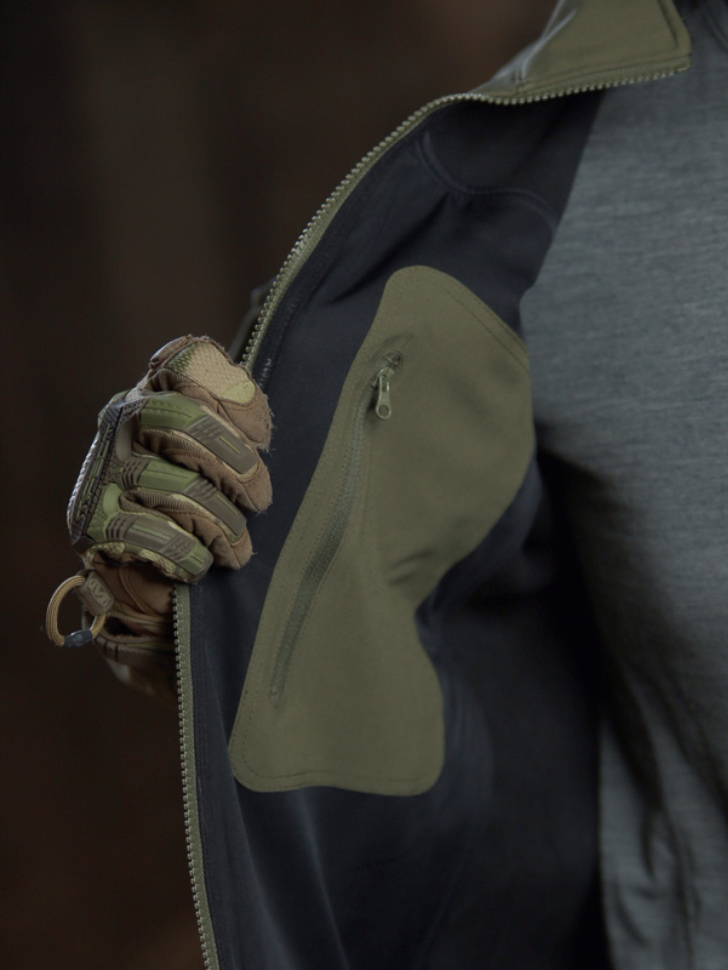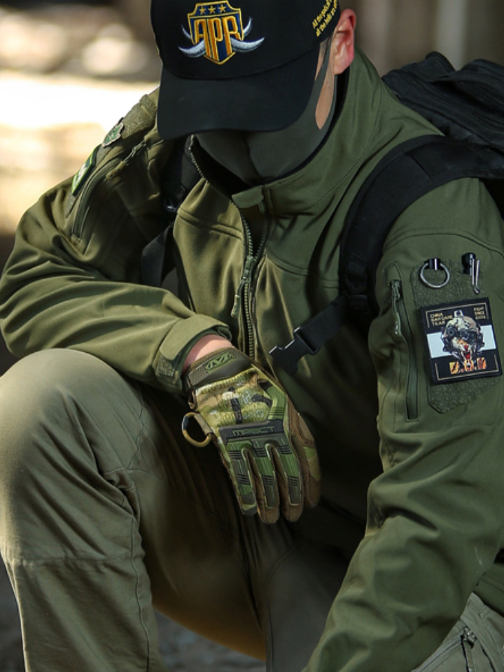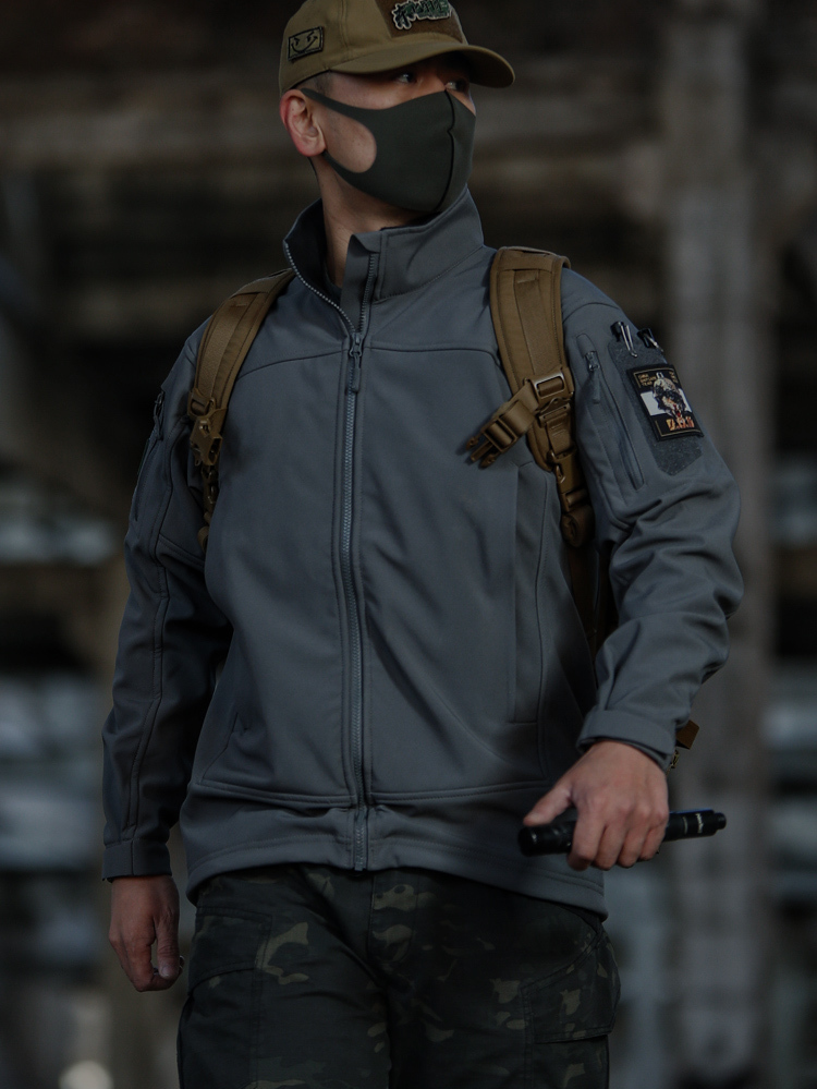 这款户外军迷战术软壳衣,精选优质75D+40D细格四面弹力布+高透TPU膜+75D/144F抗起球超细抓绒,表面TEFLON三防处理,舒适保暖,保温性能好,且有微弹性,自由不束缚,让户外出行无忧。带来舒适的保暖效果。