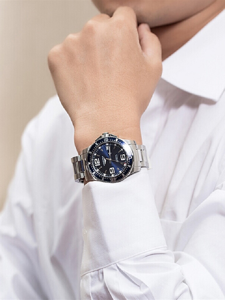 精英男士除了日常的商务会谈,还喜欢健身、游泳等运动。手表象征着男士的品味,一般商务活动或者运动活动,男士都是表不离手,对于商务精英来说高端的潜水表不但能满足商务场合还能再运动时候佩戴。 这款浪琴康卡斯潜水表保证了300米防水深度,满足的水上运动的特殊需求。