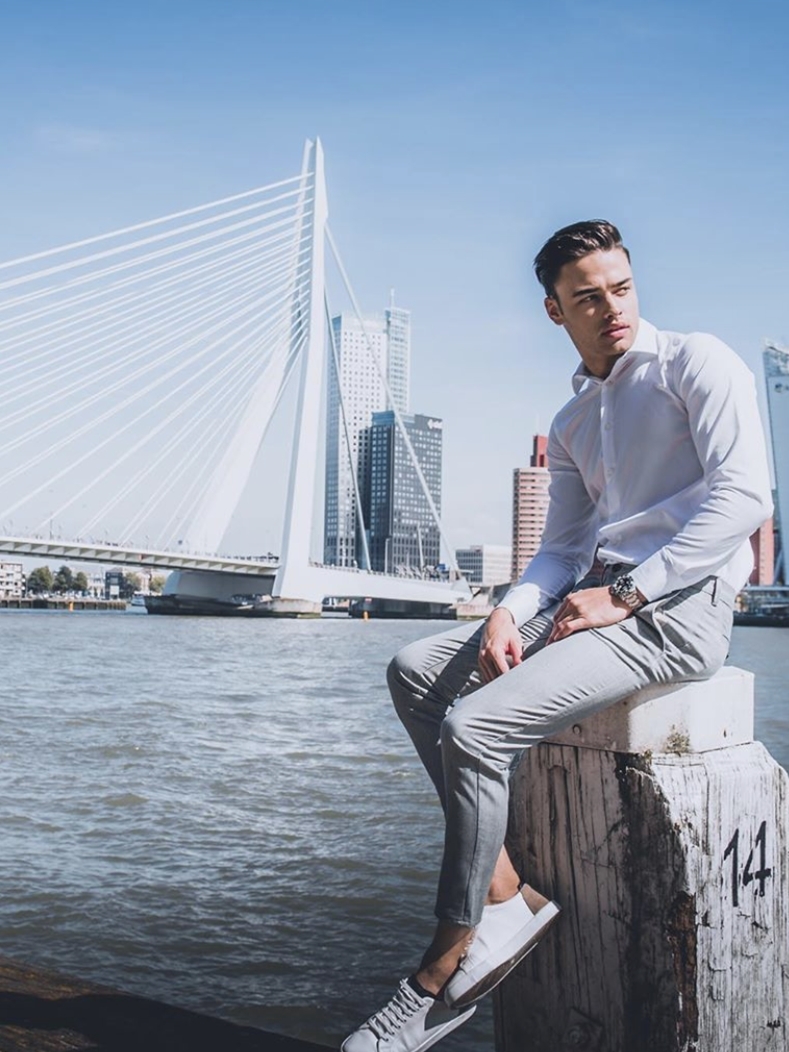 简约的高腰设计,搭配上修身的版型,上身显瘦又显高。