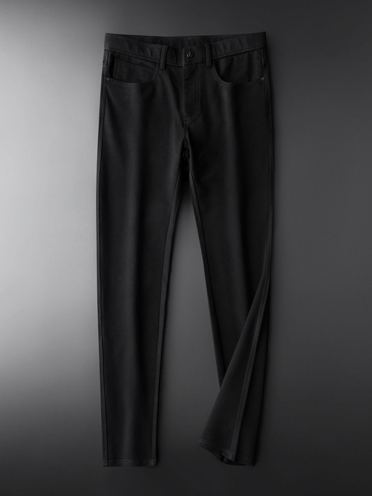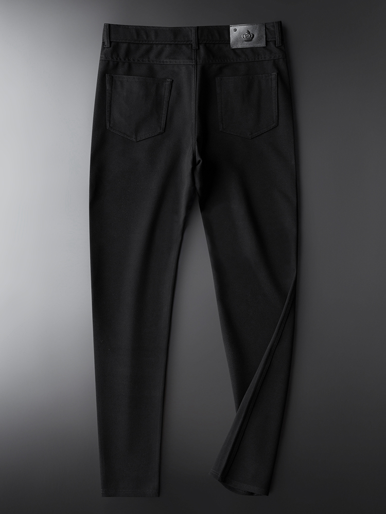 时尚暗纹面料设计,富有弹性,厚薄适中,版型非常简约的一款休闲裤。经典的黑色,不张扬,不俗气,耐看易搭配。