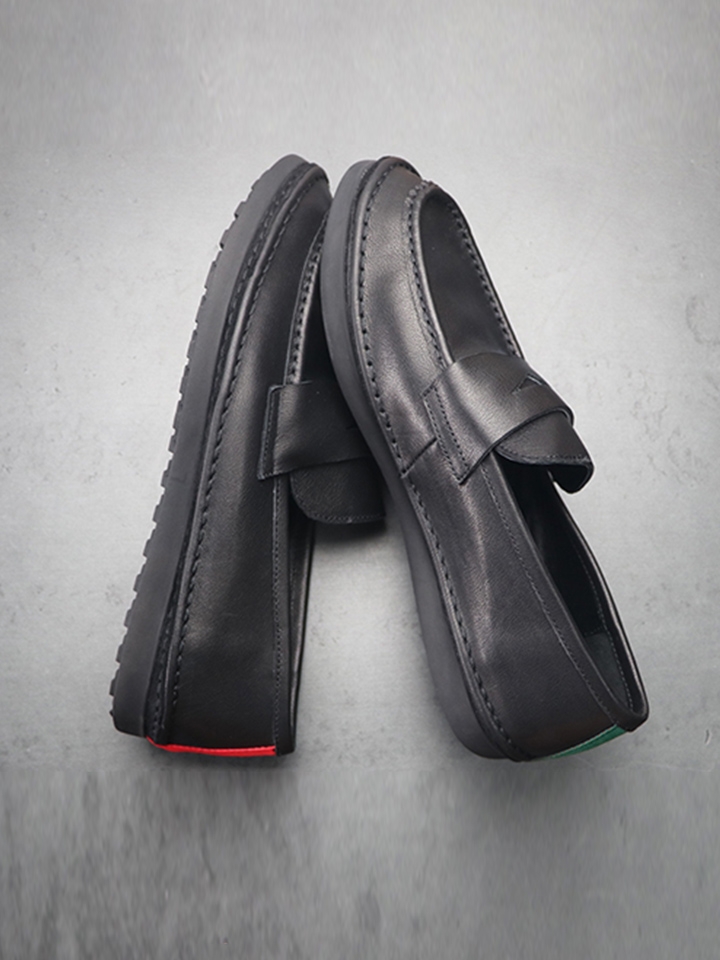 鞋边加了一圈耐磨的磨砂防磨材质,这条边看起来简单,其实是手工车线,不是胶粘的,而且要在不影响鞋子外观版型和舒适度的前提下,是非常考验工人师傅技术的。