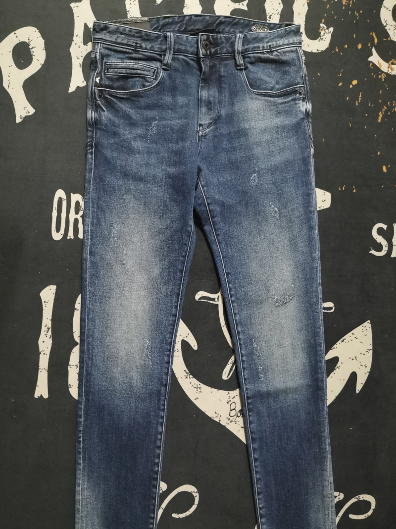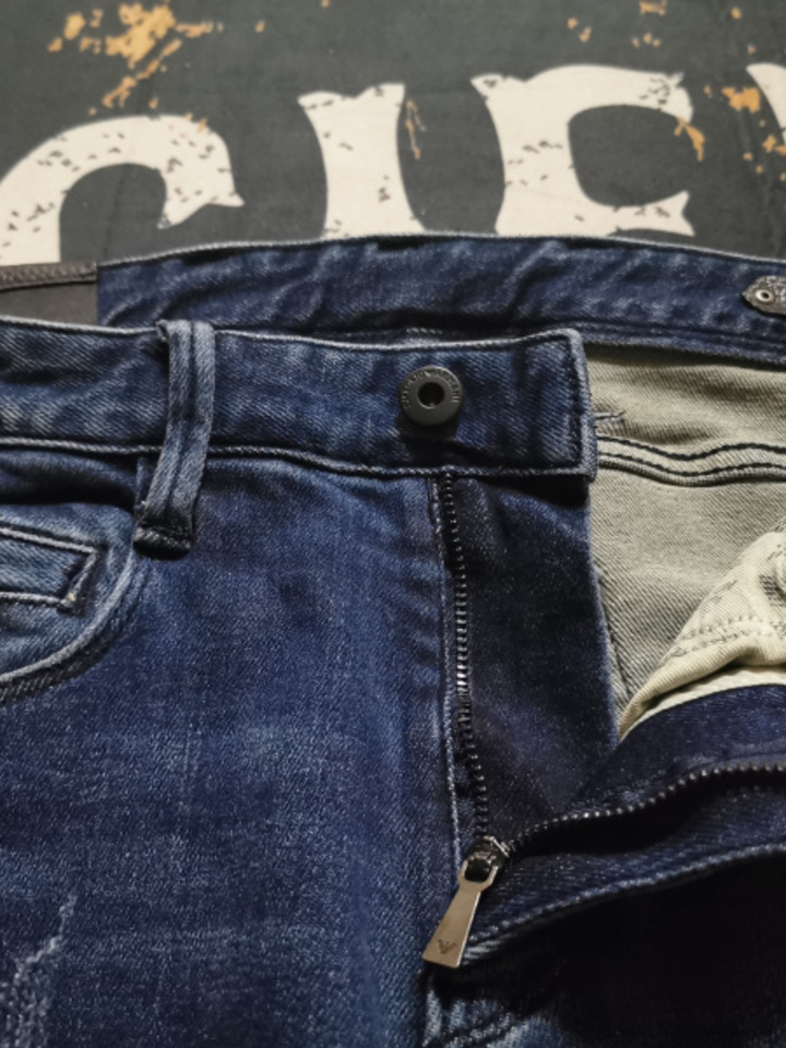 这款牛仔裤的设计很有特色,高腰的版型,很好的修饰了身材比例,显瘦效果很棒,搭配一件T恤,就能轻松穿出时尚感。