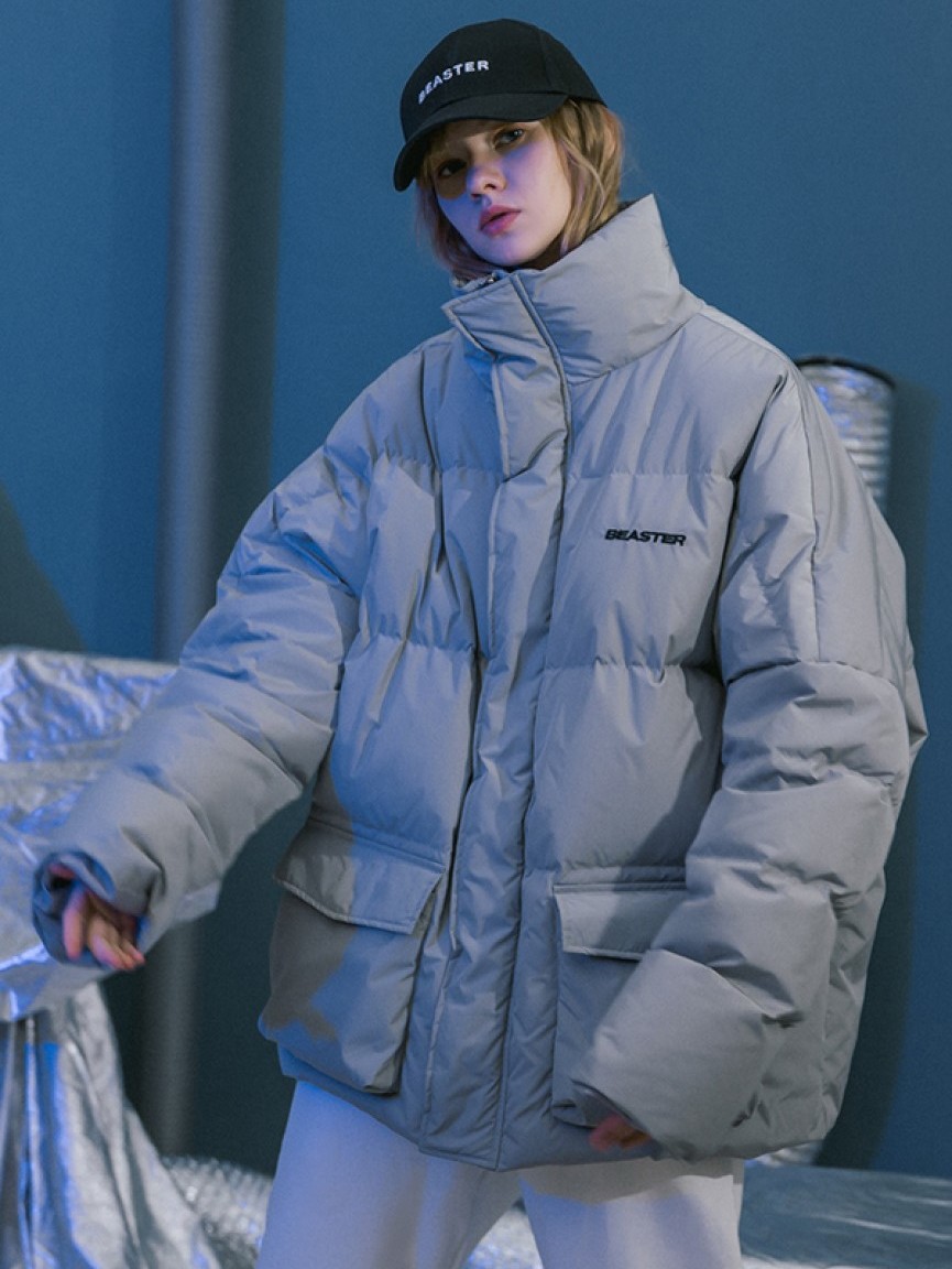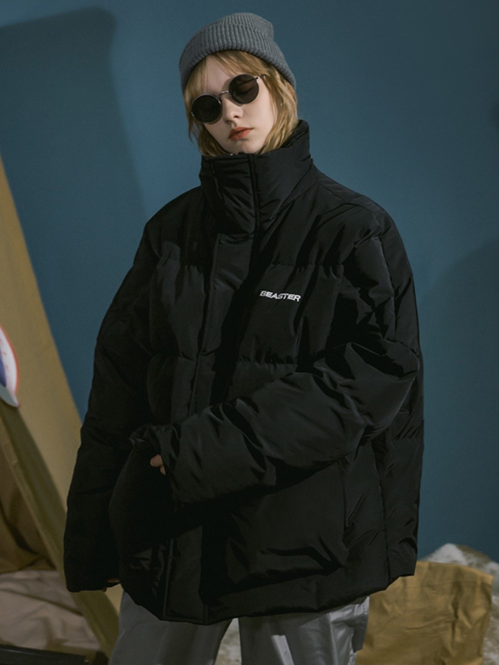 这款来自于BEASTER的羽绒服非常地简单利落,经典的小立领设计,呵护着我们的脖子,而且加入了字母印花的图案设计,尽显潮流和个性。后背加入水洗标贴布,丰富了衣身的层次感和设计感。