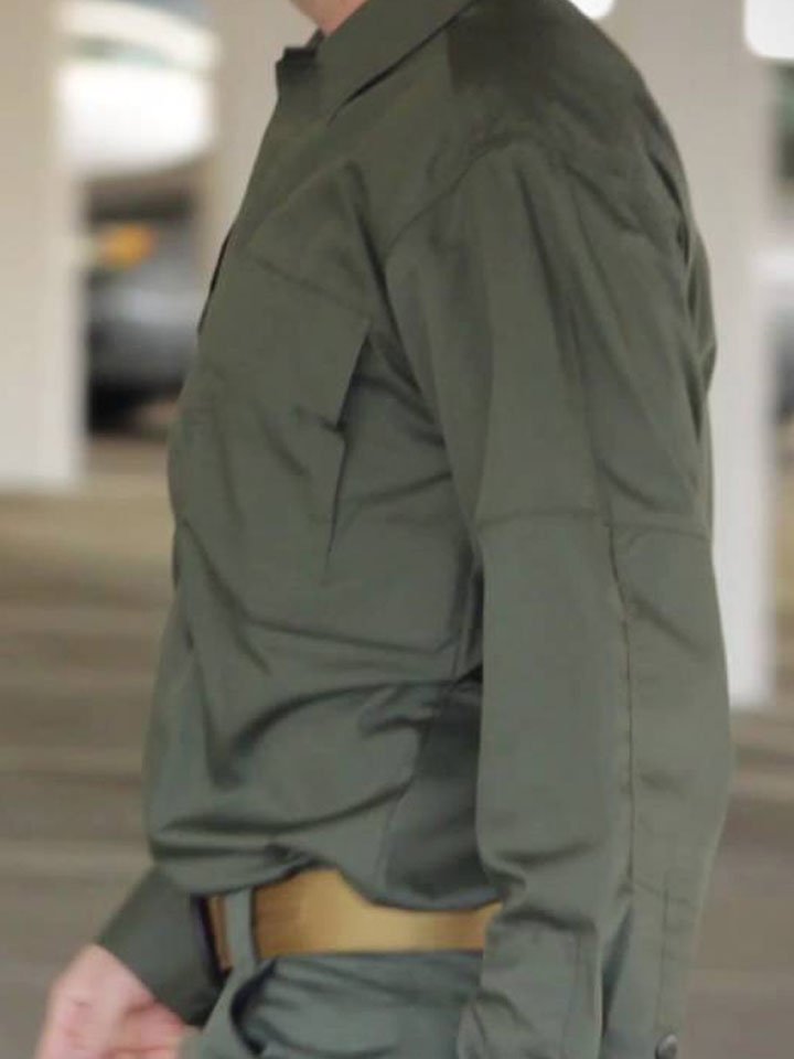 胸部专利的隐藏式文件袋提供充足的隐蔽存储空间,双摆肩确保完全自由活动。在高应力位置加上26个独立的琐式线迹,可以承受苛刻的战术环境。