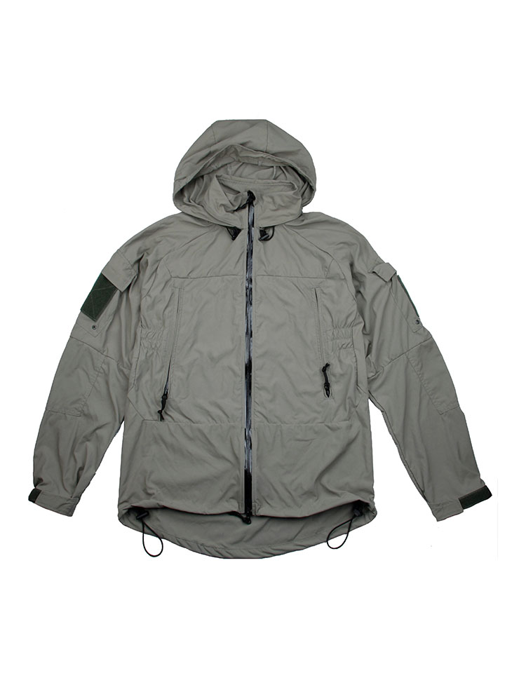 这款冲锋衣采用了稳重而又百搭的深灰色设计,户外穿搭简单又不乏男人味的选择,带有实用的拉链口袋设计,可以方便收纳小物品也不易丢失。