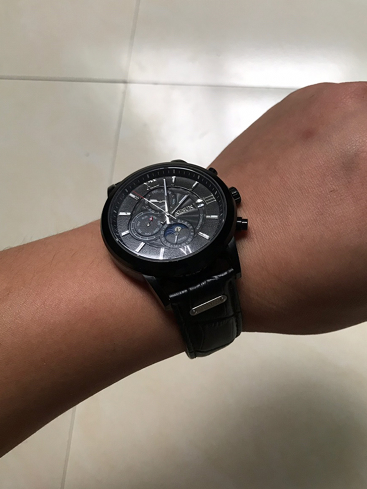 全黑色的表身,非常的酷炫,彰显男士的帅气,做工精美大方,戴上低调有气质。