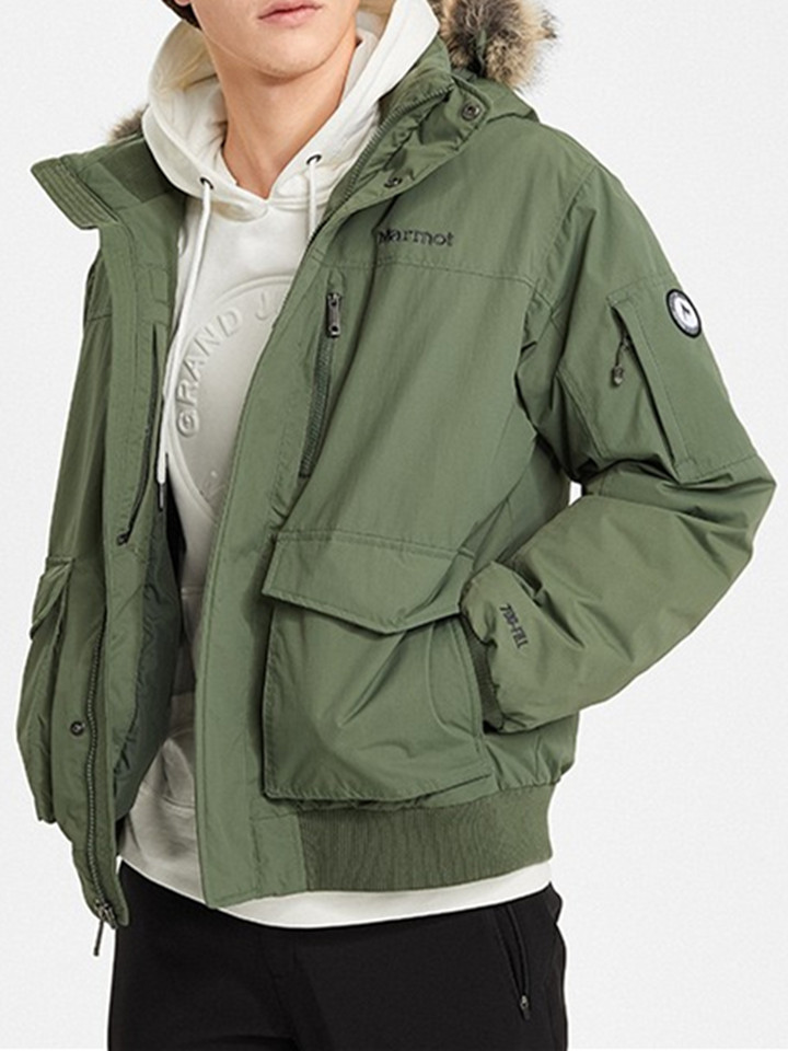 这款羽绒服是土拨鼠法兰绒衬衫和牛仔裤合适的搭配伴侣。羽绒服采用了混合的Membrain外壳和可拆卸的毛皮褶边风帽。这件粗犷英俊的夹克什么都能搭配。