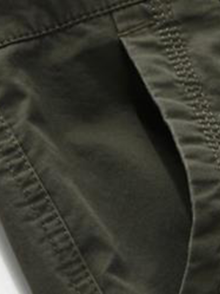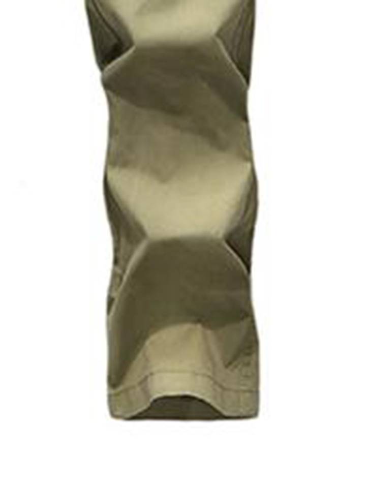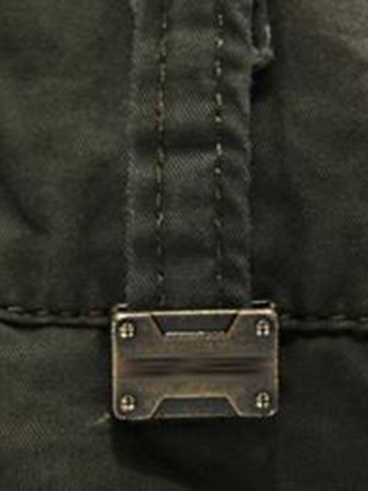 裤子选用了军旅气质的军绿色基调,辅以裤身两侧做工精湛的翻边口袋拼接,配以简洁的纽扣点缀,既鲜明时尚又给人以复古之感,打造休闲时尚的穿搭感。