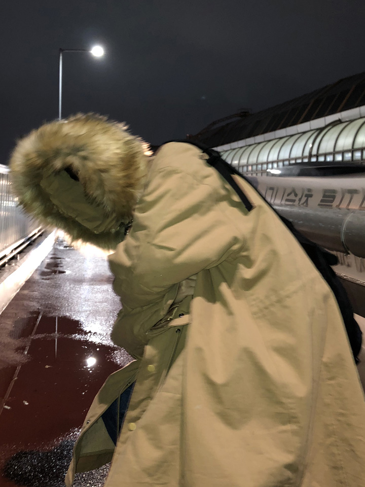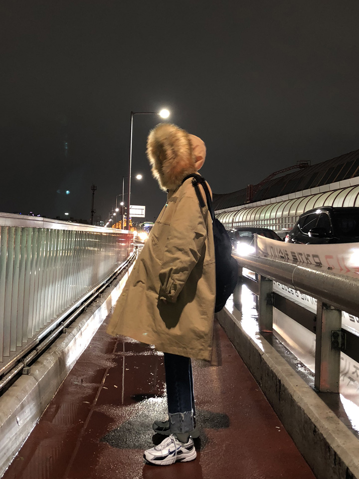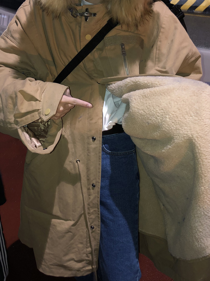 袖口的扣子很好的收缩了袖口,使衣服可以很好地贴合手腕,更加保暖。帽兜上毛毛的点缀,是单调的大衣不再单调。
