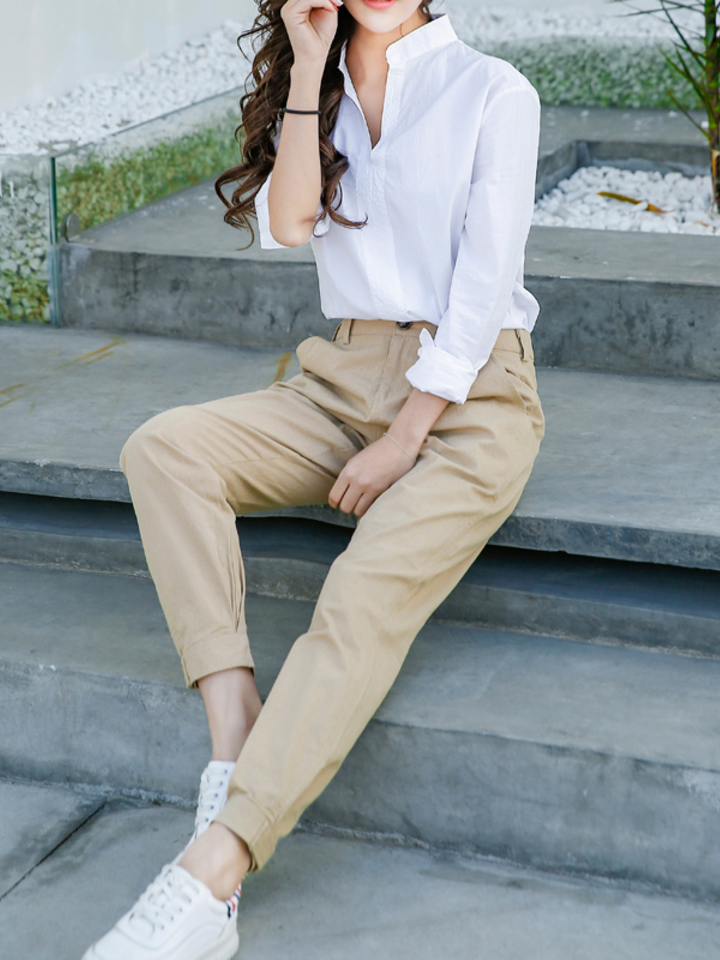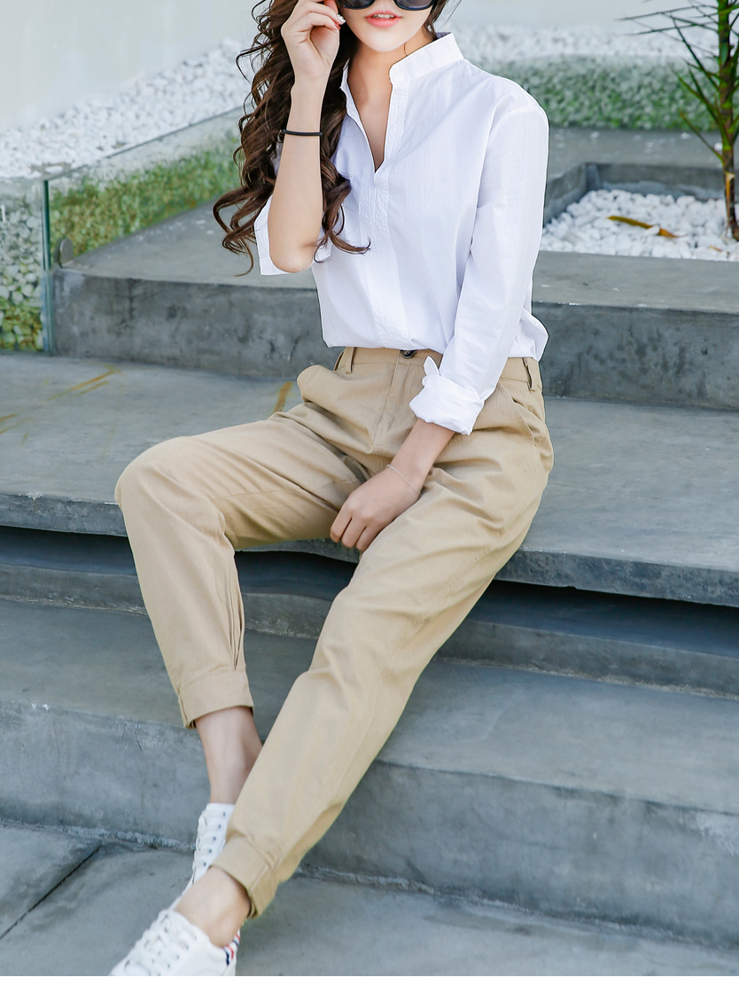 高腰的设计,拉长腿部线条,显瘦效果很好,高腰的版型,很显高挑,修身的剪裁,修饰腿部曲线,上身很有范。