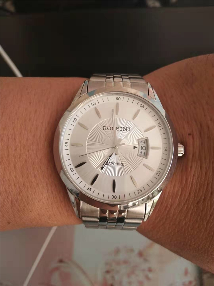 非常大气的一款手表,白色的表盘,比较显成熟,黑色也不错,戴着非常显档次。