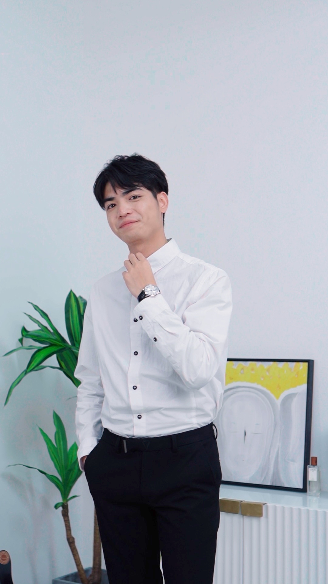 简约的高腰设计,搭配上修身的版型,上身显瘦又显高。