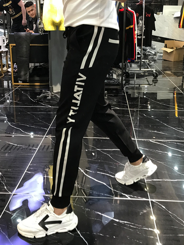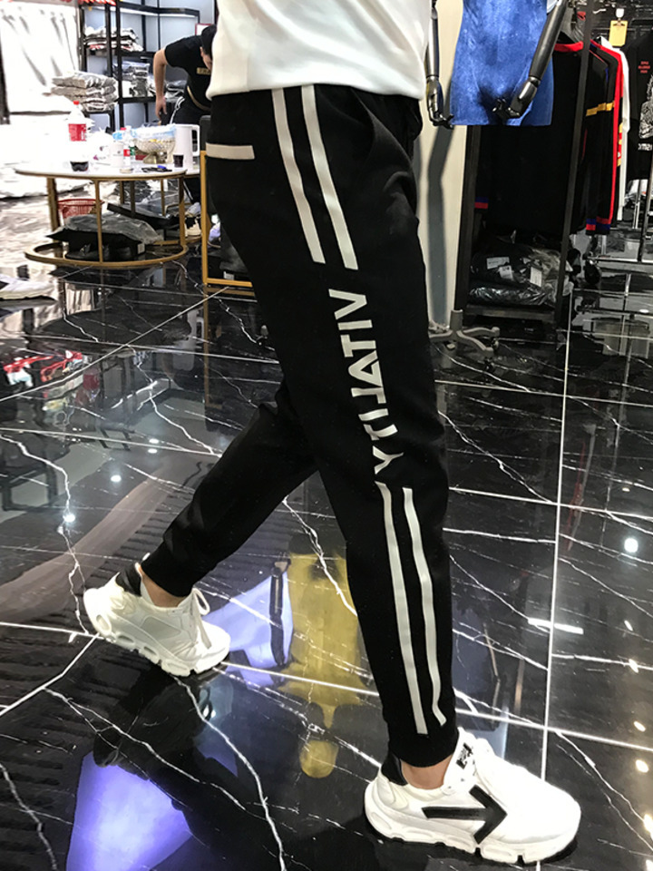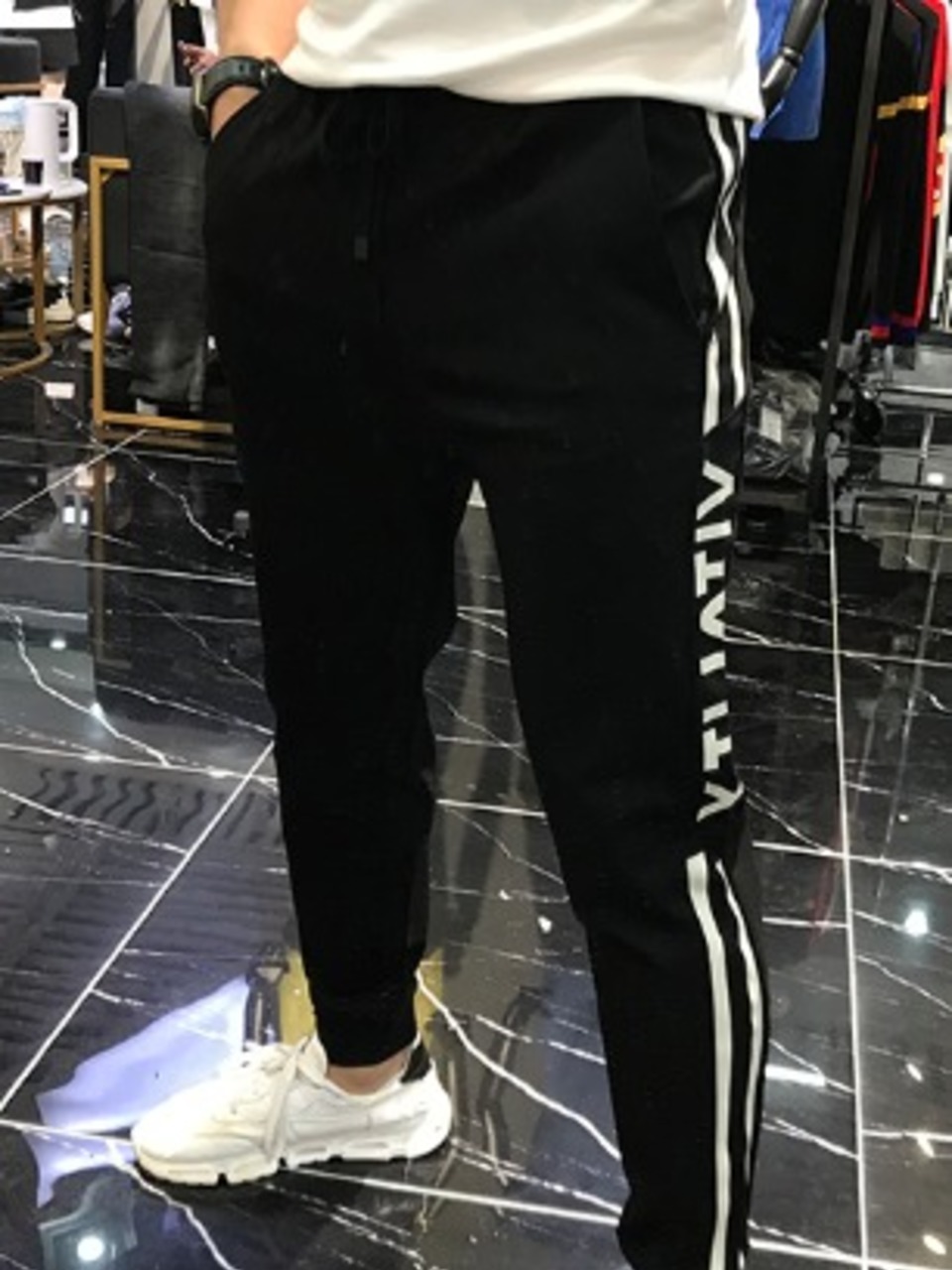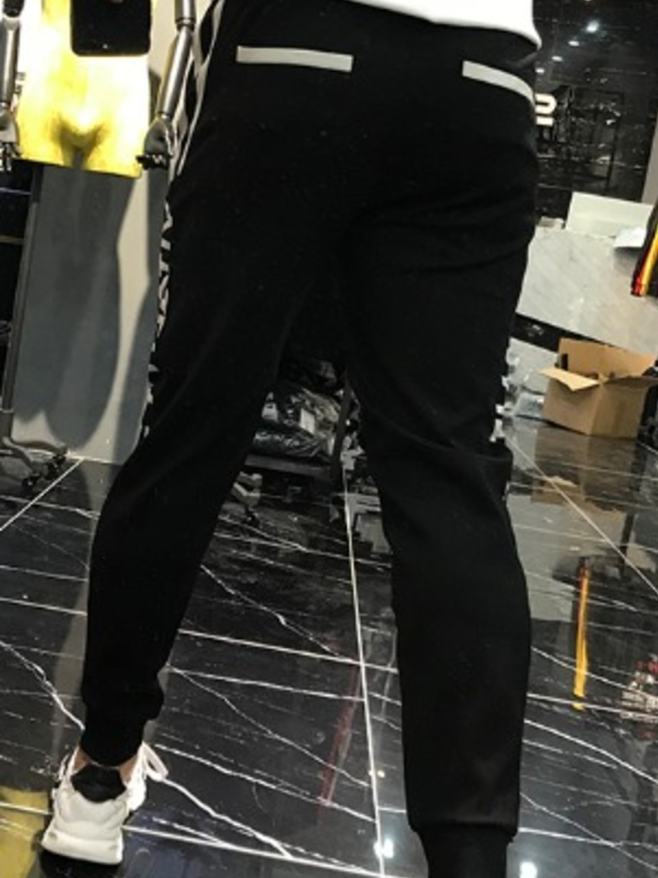 这件裤子建议搭配一件简单的白色圆领印花卫衣,搭配简单的运动鞋,就可以十分帅气的出街,家居也可以很舒适的穿着。