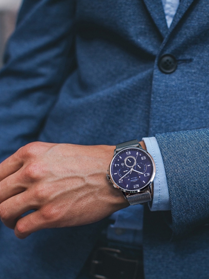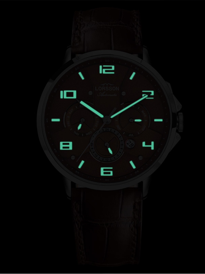 多功能表盘,能够非常方便的读取星期、日历、月历等,让你随时随地掌握时间。同时,指针以及刻度都是夜光效果,发光均匀,持续时间长。