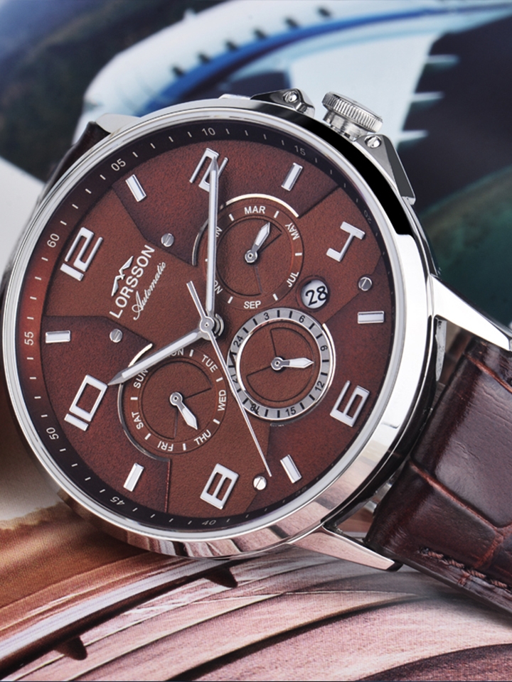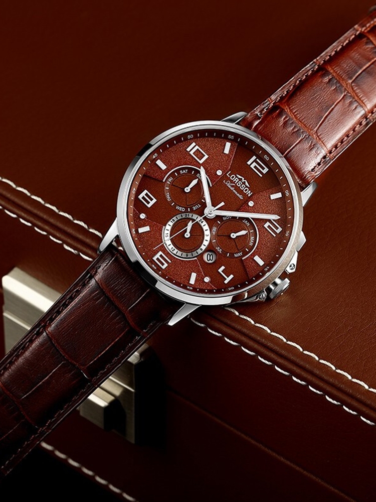 表带采用的是高山野牛皮,柔软度高,更贴合手臂。同时,表壳的316L精钢,耐磨耐腐蚀,品质卓越。