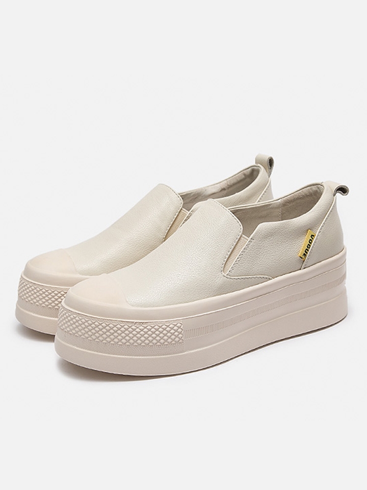 干净的小白鞋实穿百搭又清新减龄。经典圆头简约大方,衬托玲珑秀气的脚型,加之一脚蹬款式设计,穿脱轻松便利,带出了随性不羁的慵懒风。松糕厚底在视觉上延伸了腿部线条,衬托女孩独有的轻盈与俏丽,演绎舒适自在的休闲街头范。