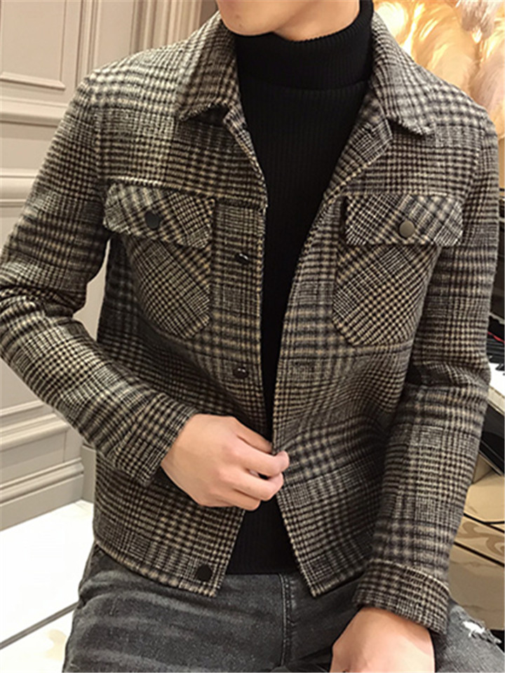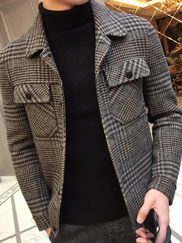 优质的羊毛呢子面料,手感厚实舒适,十分保暖,简约版型干净利落,格子线条使服饰更大方帅气。