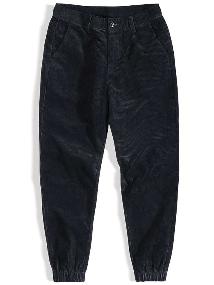 裤头纽扣环保树脂,质量上乘精致。个性口袋设计,大大提升裤子的功能性,亮点十足。松紧裤脚斯文大方。