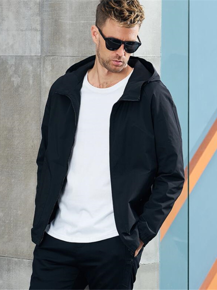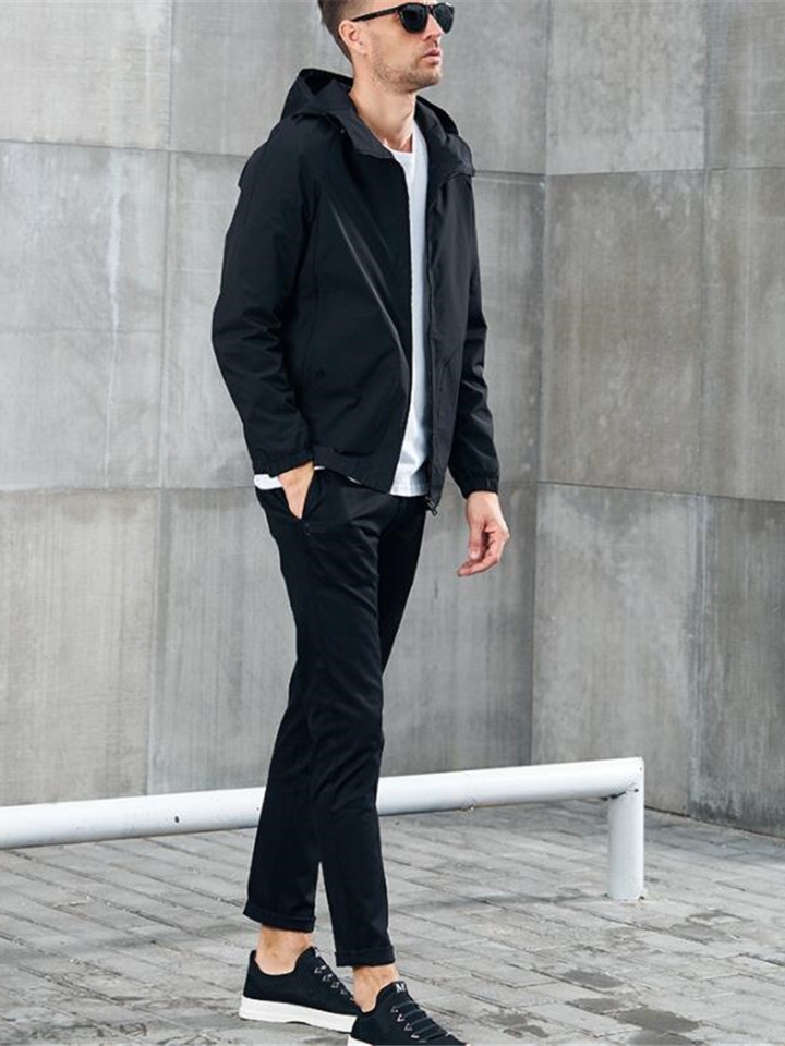 展现低调大气潮男魅力的连帽夹克,在搭配上可以选择一件圆领的T恤打底,清爽的白色系基底,耐看又好搭配。搭配一条小脚的休闲裤,九分裤的版型秀出心爱的美鞋。