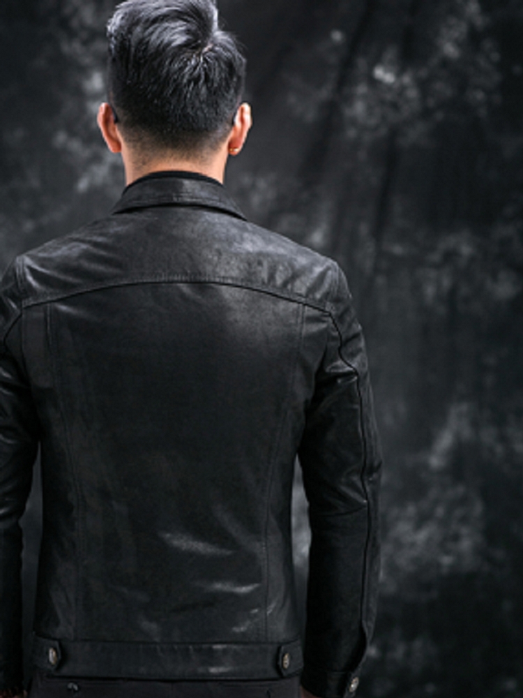 这款皮衣采用了优质的头层牛皮,皮质细腻,手感柔软,穿着舒适,修身的版型设计,上身效果很好,帅气的机车版型,时尚大气,彰显男士的帅气与不羁。短款衣身,拉长身材比例。