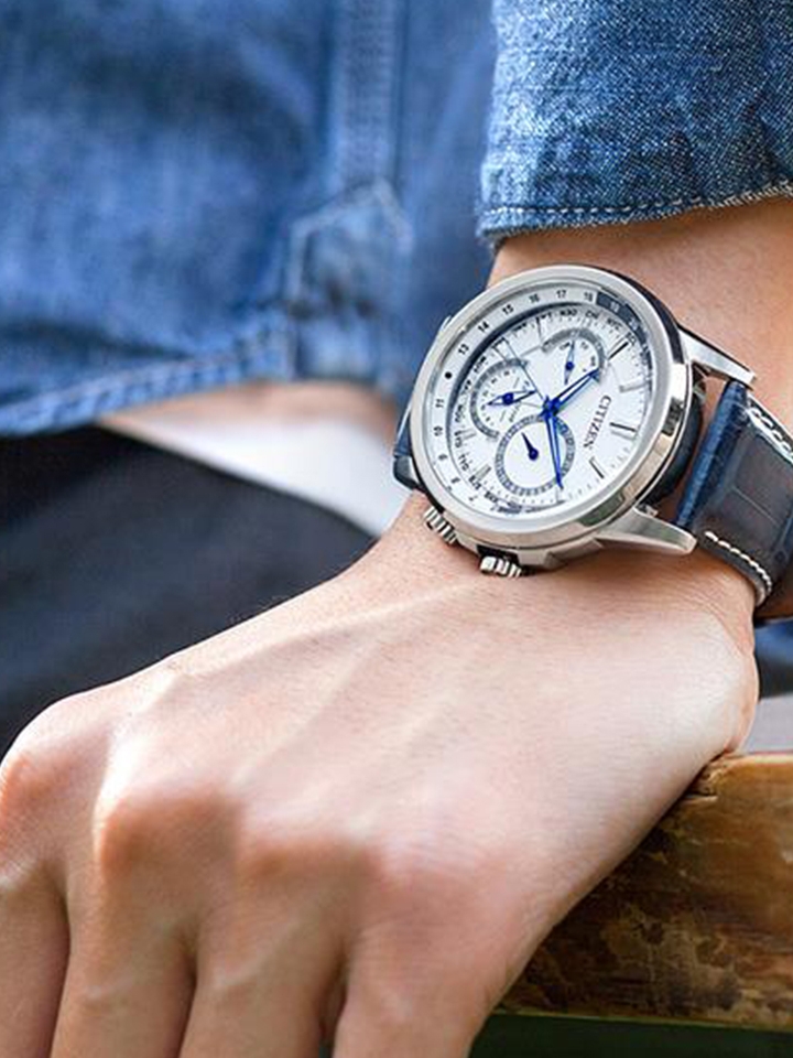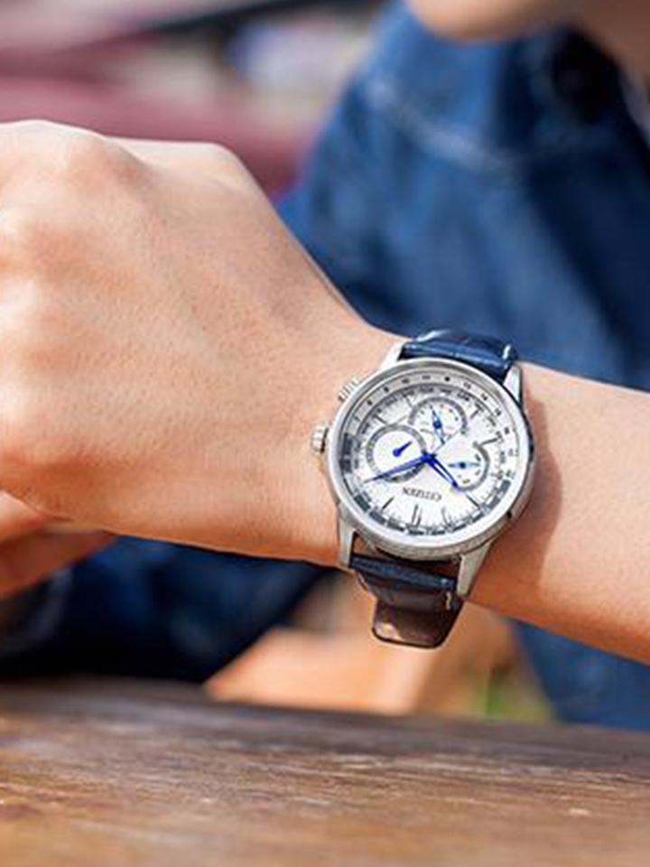 来自知名腕表品牌CITIZEN西铁城,银色不锈钢表壳表带搭配白色三眼式表盘兼具设计感与功能性,搭载光动能机芯,运用自然光或人造光为手表运转提供动力。