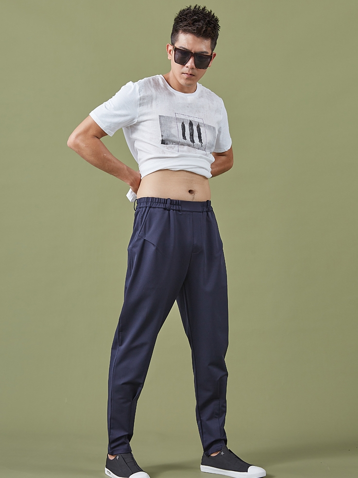 微吊裆的小脚休闲裤。使穿着更加舒适,带有一丝小叛逆的节奏。很酷!搭配高帮板鞋配以简约卫衣即可。