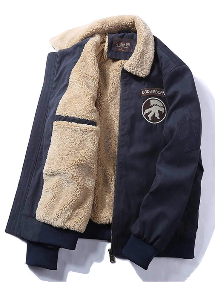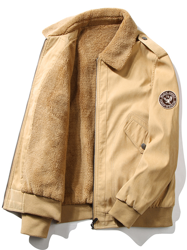 厚实的毛毛领触感细腻顺滑,经典的徽章贴布增强视觉效果,高腰抽绳设计修身显瘦,柔软的羊羔绒内里锁热抗寒。