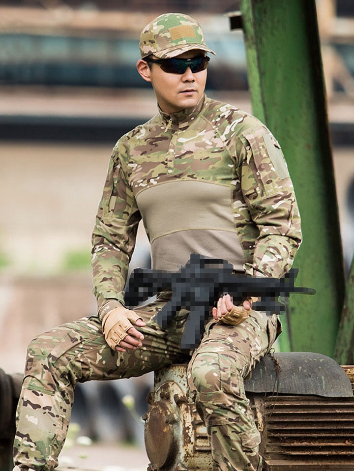无贼君品这款四代战术蛙服套装上衣采用94%棉质面料搭配6%氨纶材质,柔软舒适,保暖性强,贴合皮肤的棉料透气性保证身体在户外运动时的持久干爽;氨纶的弹性非常好,且不易起皱,耐磨耐酸碱,不易褪色。