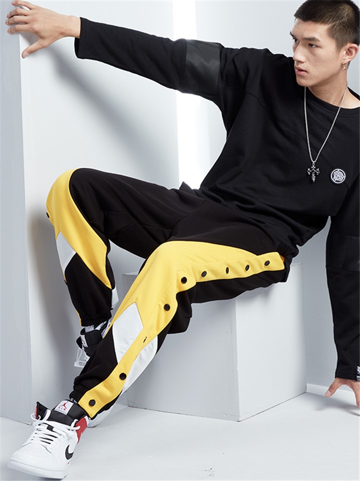宽松卫裤版型,休闲舒适,裤子束脚设计,修饰腿型,两种颜色,满足不同需求,宽松版型,打造嘻哈风格,个性印花,彰显潮流时尚。