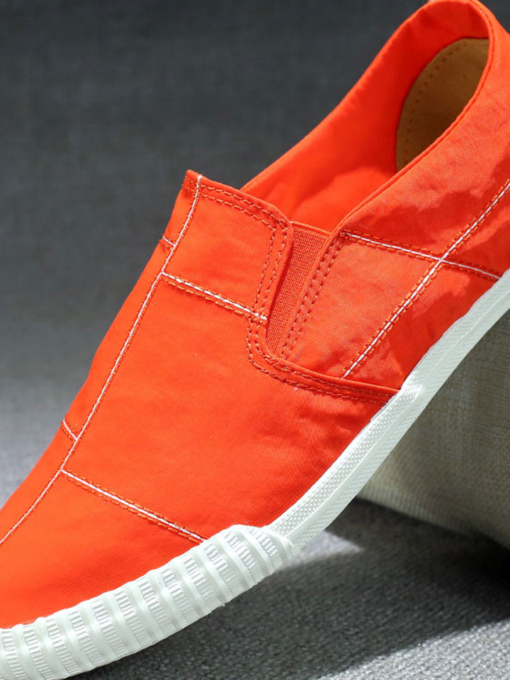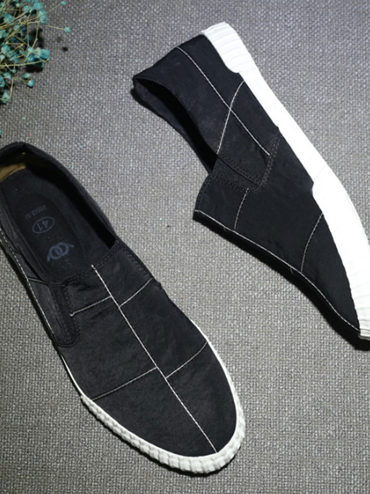 这款休闲风的低帮帆布鞋,采用经典的平底设计,舒适休闲,穿脱方便,纯色的鞋身搭配上撞色的车缝线,营造出一种个性时尚的气息。