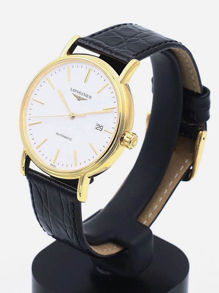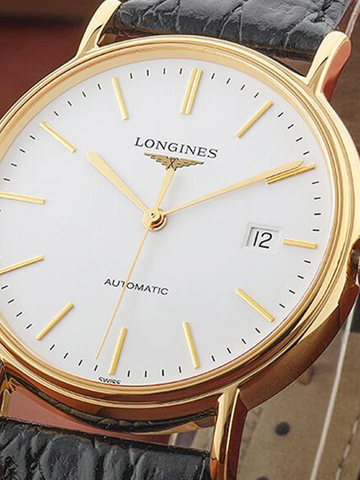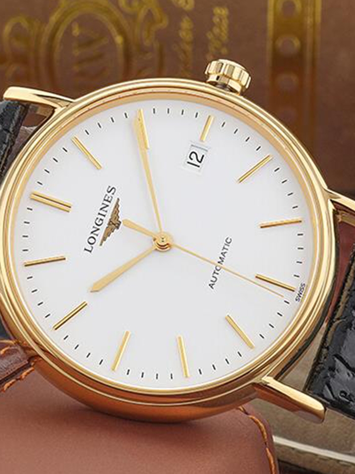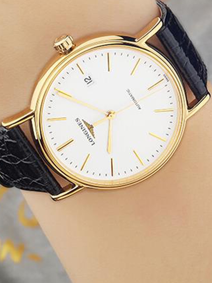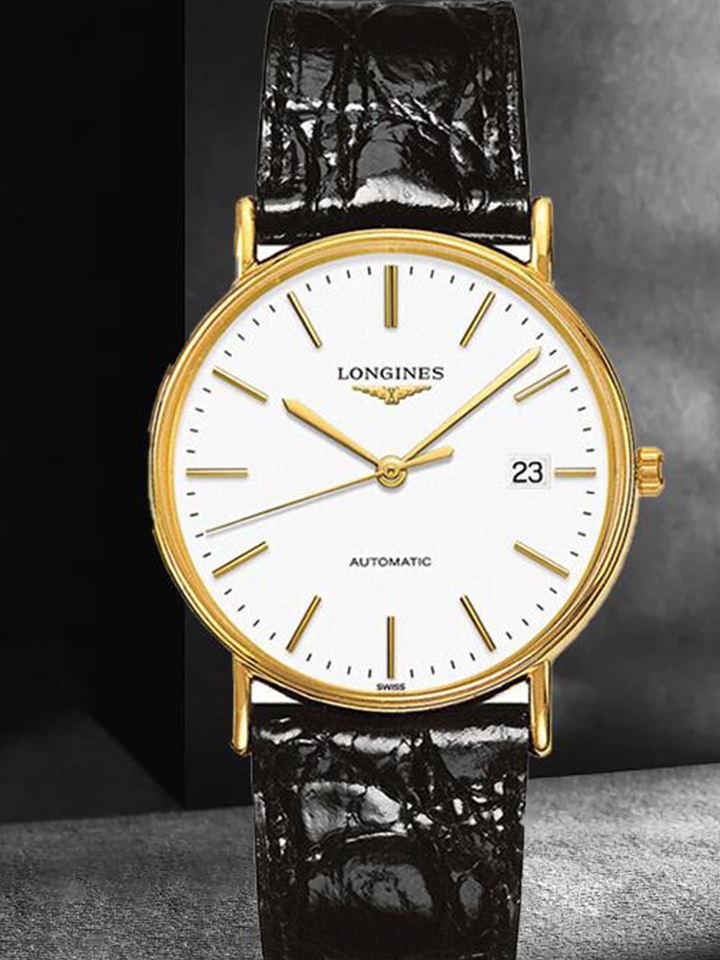 浪琴是一个以简约、大气为主要设计风格的轻奢品牌,这款腕表为自动机械机芯,配合小窗日历显示,充分满足日常需求;极具光泽感的钢带,配合白色表盘设计,衬托出一枚干练有型的都市型男。