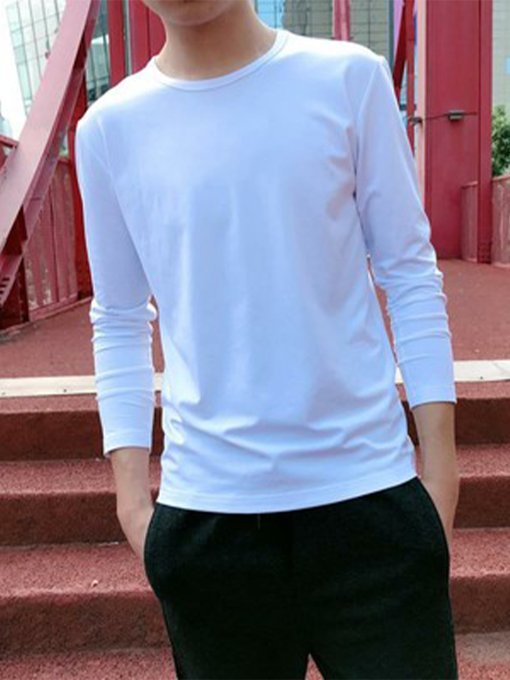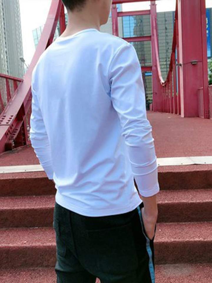 本款宝贝男士长袖T恤均选用180克精梳拉架蚀毛面料;这种面料是棉质面料中非常好的一种,目前专柜一线品牌的T恤均采用此面料,精梳的棉纱更平滑,做出来。
