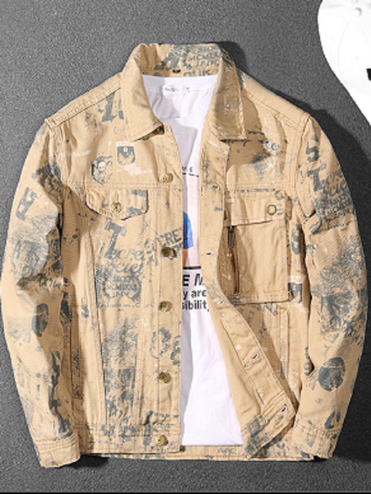 宽松的版型,上身很显瘦。翻领设计,彰显男士魅力。水洗工艺,彰显青春活力。胸前印花,彰显潮流个性。棉质牛仔面料,舒适透气。