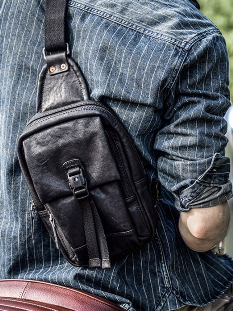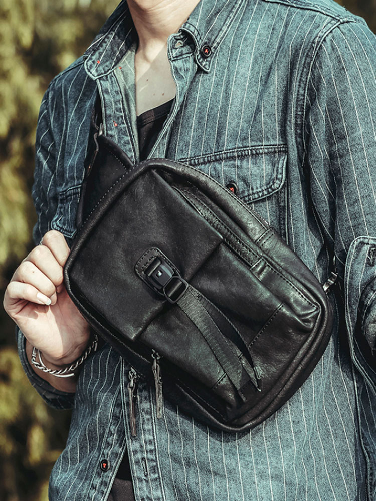 每个男士都离不开这样的一款胸包,简约帅气!小巧的胸包款式,斜跨单肩等多种背提方式,轻松玩转潮流,自由调节背带长度,出行便携,适宜于旅行,骑车。而大容量结构设计,放钥匙、手机、钱包,轻松解救你的口袋,简单实用方便每一天。