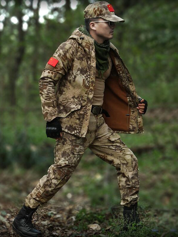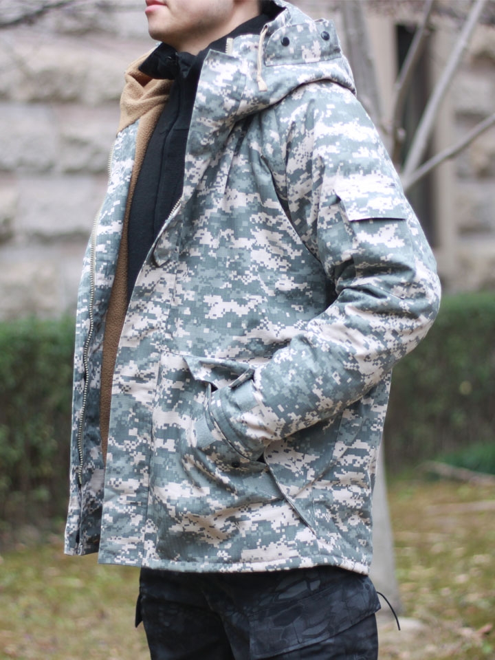 内里充绒加厚采用优质加绒内胆,外层采用优质高密度纤维防风性强,上身柔软舒适。版型修身,3D剪裁更显身材,适搭任何风格。蛇纹迷彩,个性创新,打破传统迷彩的拘束。样式设计实用性强,袋子多的特点不但视觉不会疲劳,反而还抓人眼球。