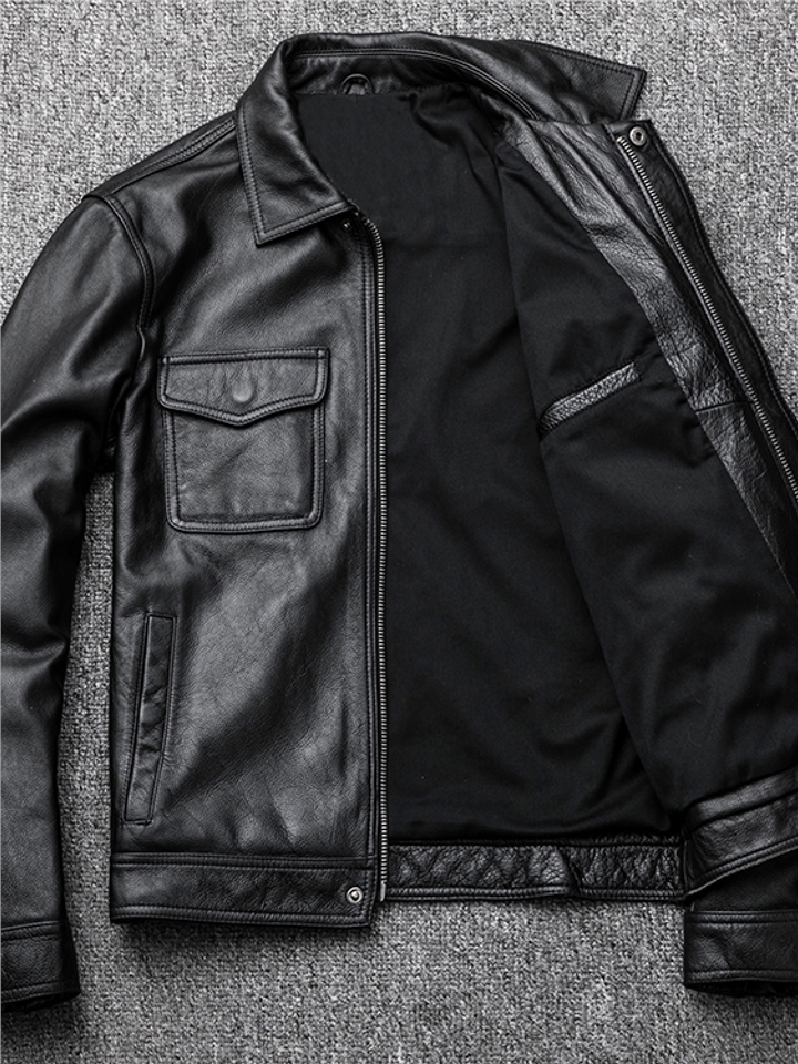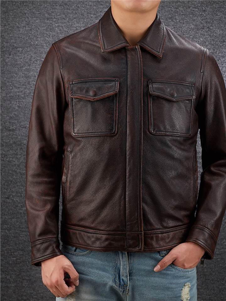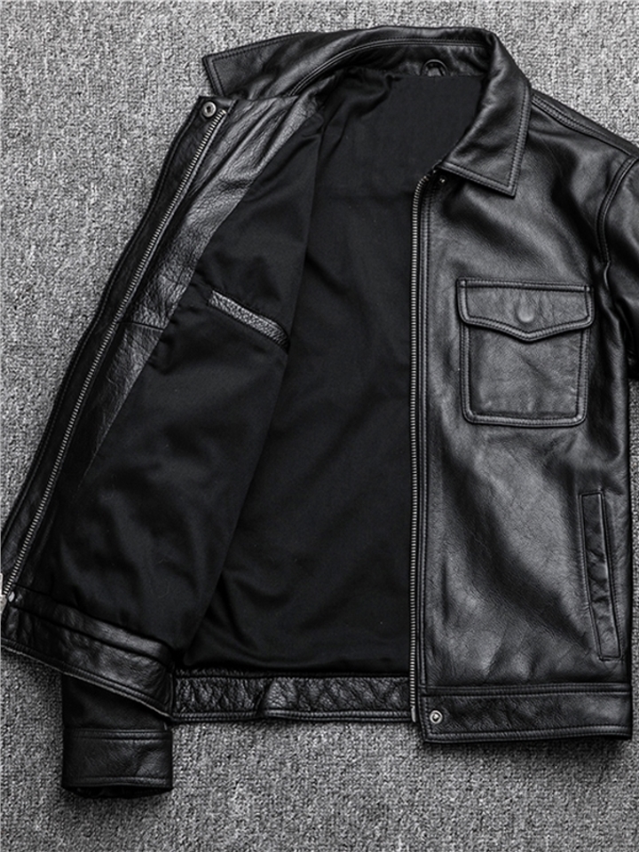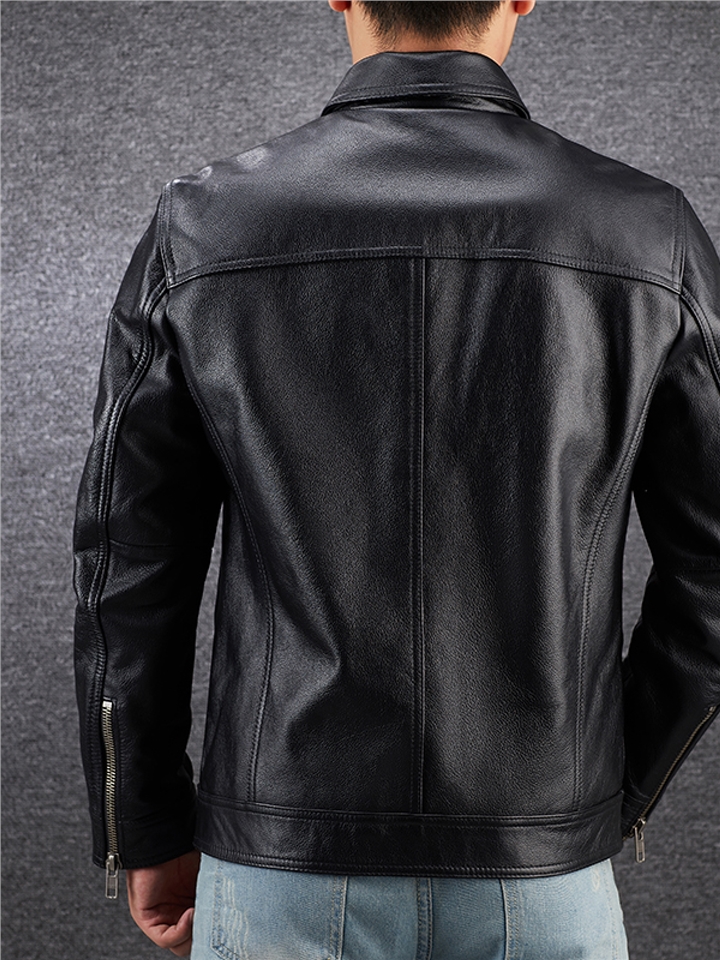 皮质夹克版型,帅气有型。精选头层牛皮,柔软舒适。短打皮夹克,矮个男生飙高终极武器。