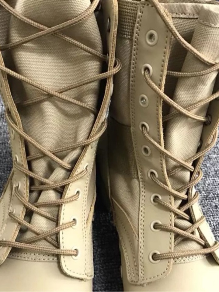 这款作战靴的风格有一种经典的美式做旧的风格,从材质面料上来看它都是不仅美观而且透气性实用性非常好的一个靴子。