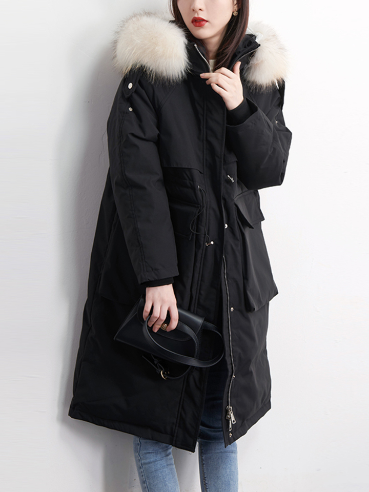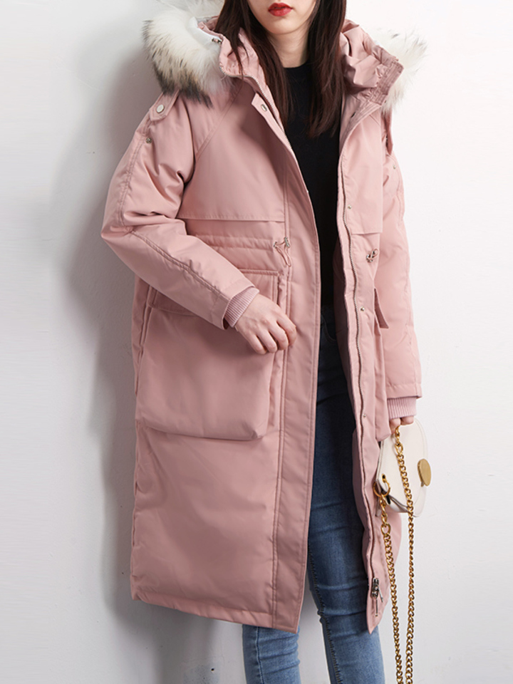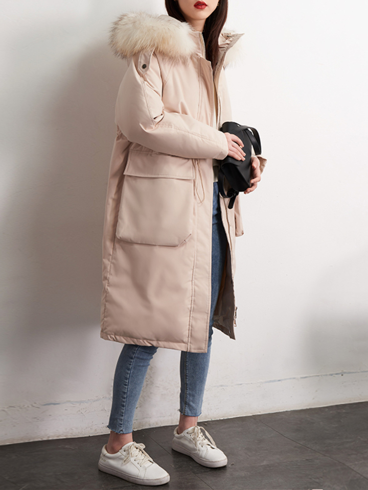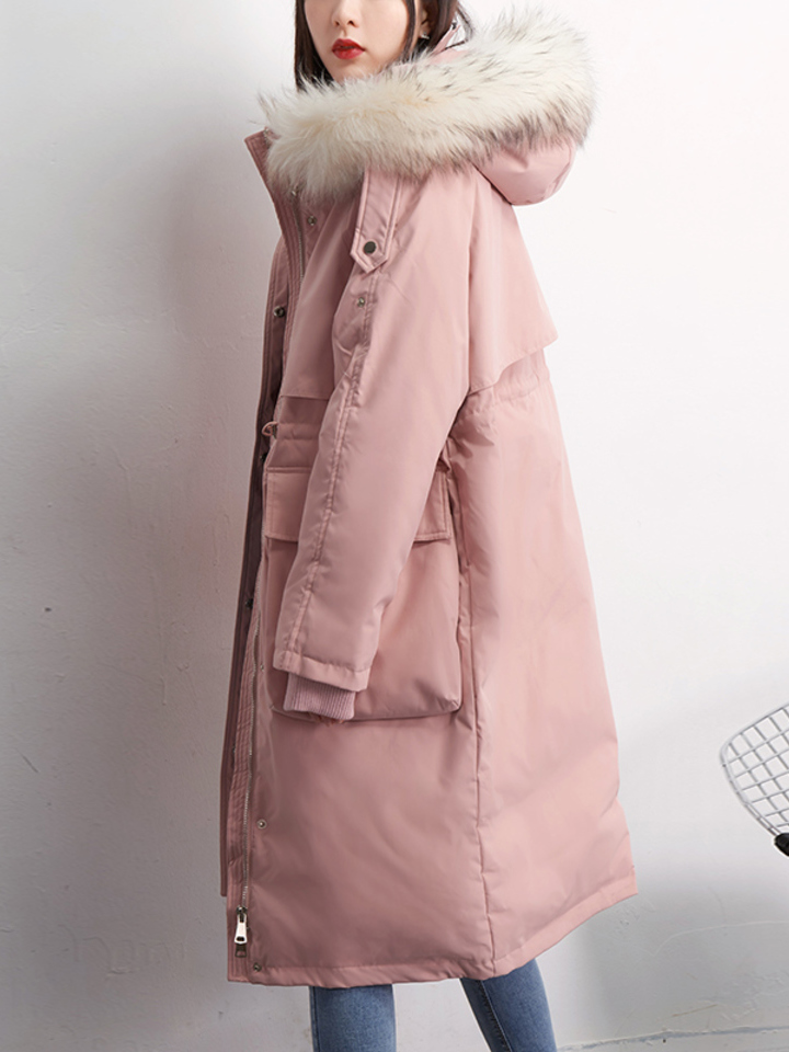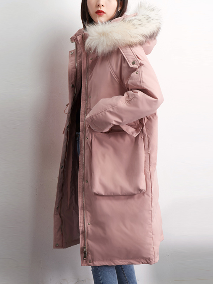 这款保暖淑女的大毛领羽绒服,淡淡的少女粉与聚酯纤维面料结合,配上白鸭绒填充,保暖性超好,足以抵御冬天刺骨的寒风。