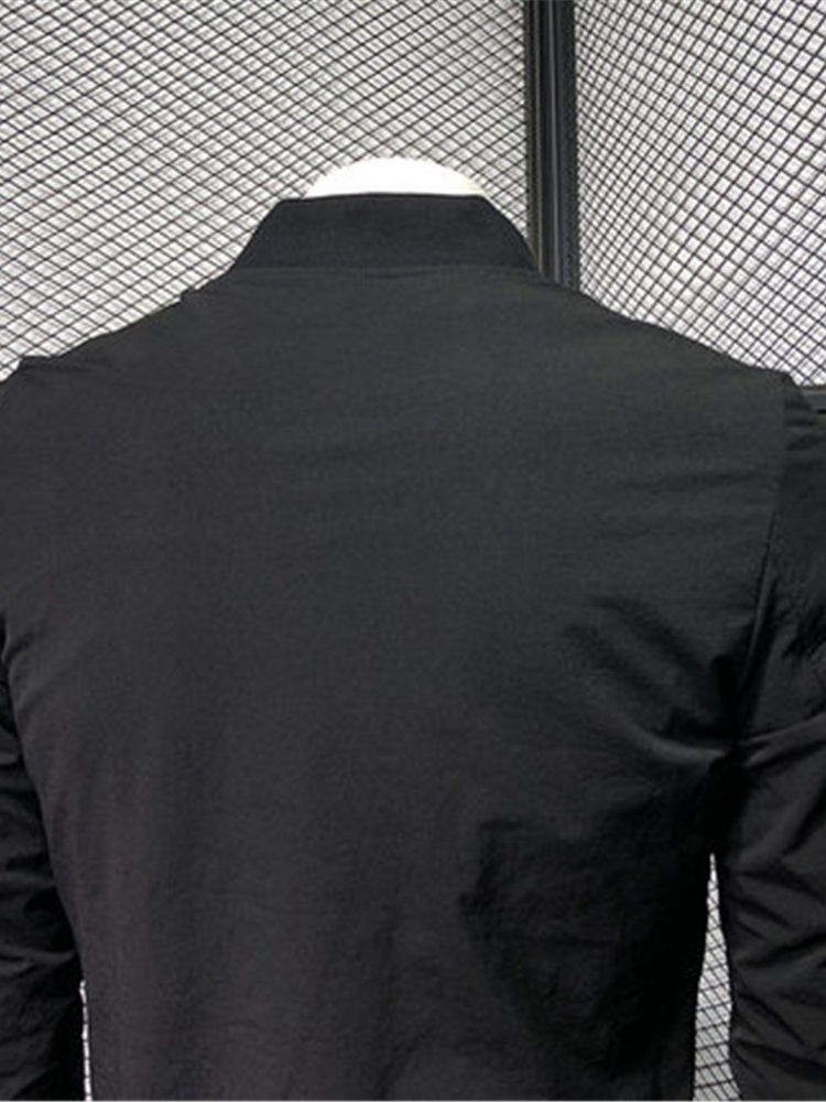 夹克一直是潮男们的经典款式,近年来越发大热。流畅的衣身线条,搭配上挺阔的版型设计,增加了穿着者的型男魅力。虽没有繁复的元素装饰,却让衣身更加的百搭,小立领设计,有效修饰脖颈,更显干练利落的气质。